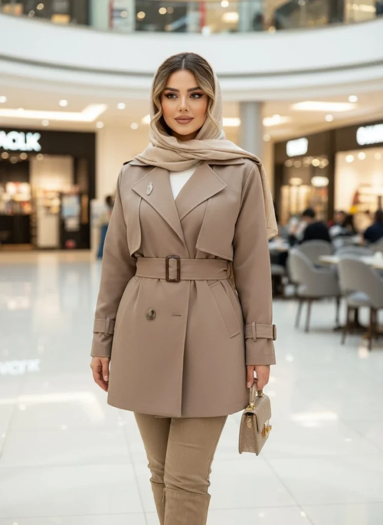 ترنچ کت بسیار شیک و با کیفیت مناسب تا سایز 48 در چند رنگ زیبا برای خانم های شیک پوش