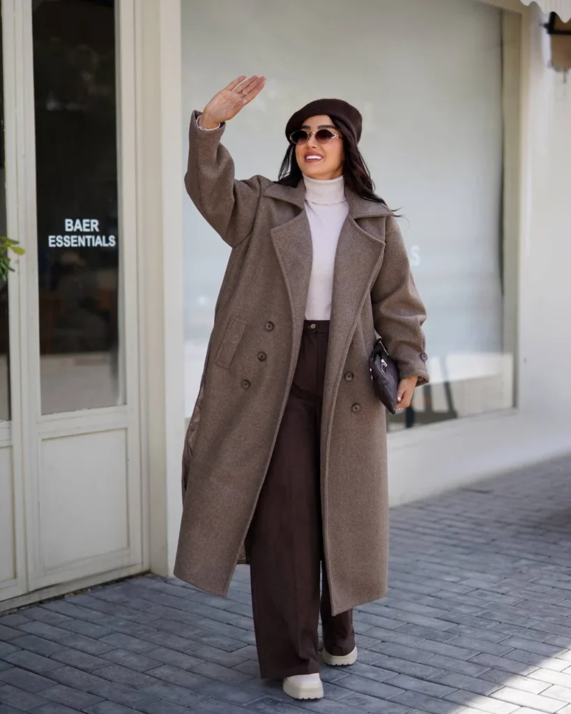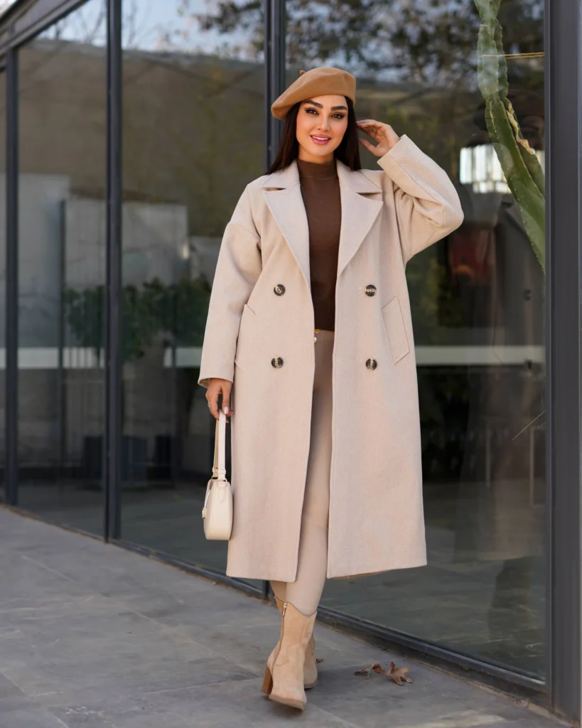 پالتوی بلند بسیار شیک و با کیفیت مناسب تا سایز 46 در چند رنگ زیبا برای خانم های شیک پوش