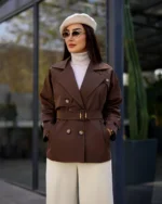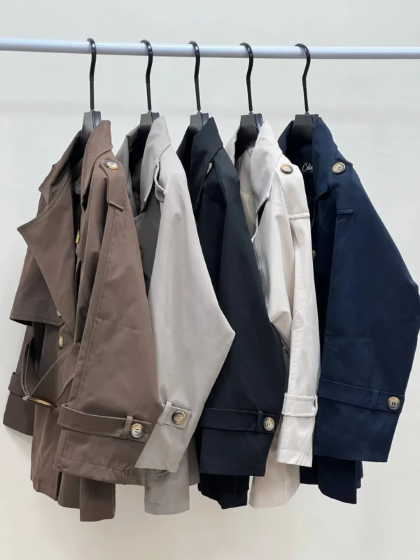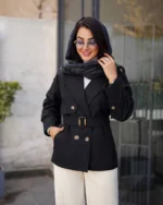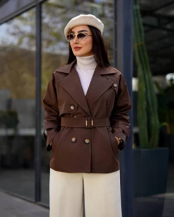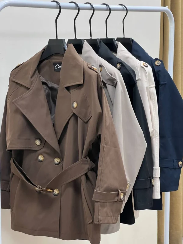 مانتوی بارانی کوتاه بسیار شیک و با کیفیت مناسب تا سایز 46 در چند رنگ زیبا برای خانم های شیک پوش