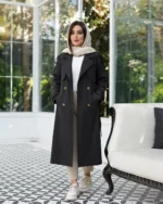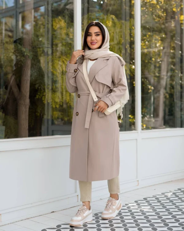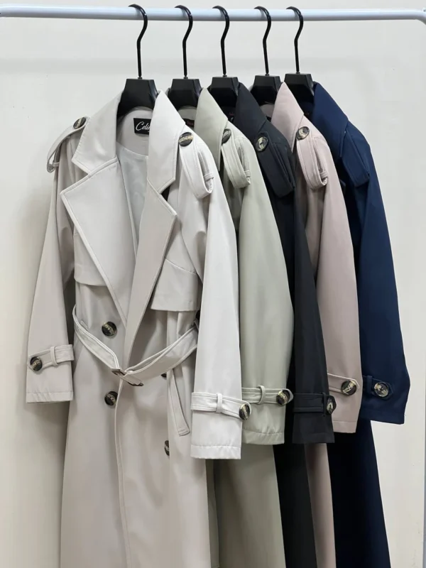 مانتوی بارانی بلند بسیار شیک و با کیفیت مناسب تا سایز 46 در چند رنگ زیبا برای خانم های شیک پوش