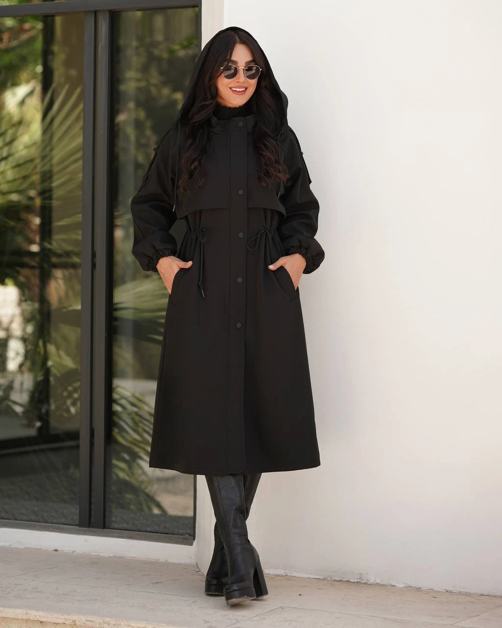 🧥مدل :بارونی بلند شنل دار،کلاهدار،دوخت دوزی شطرنجی