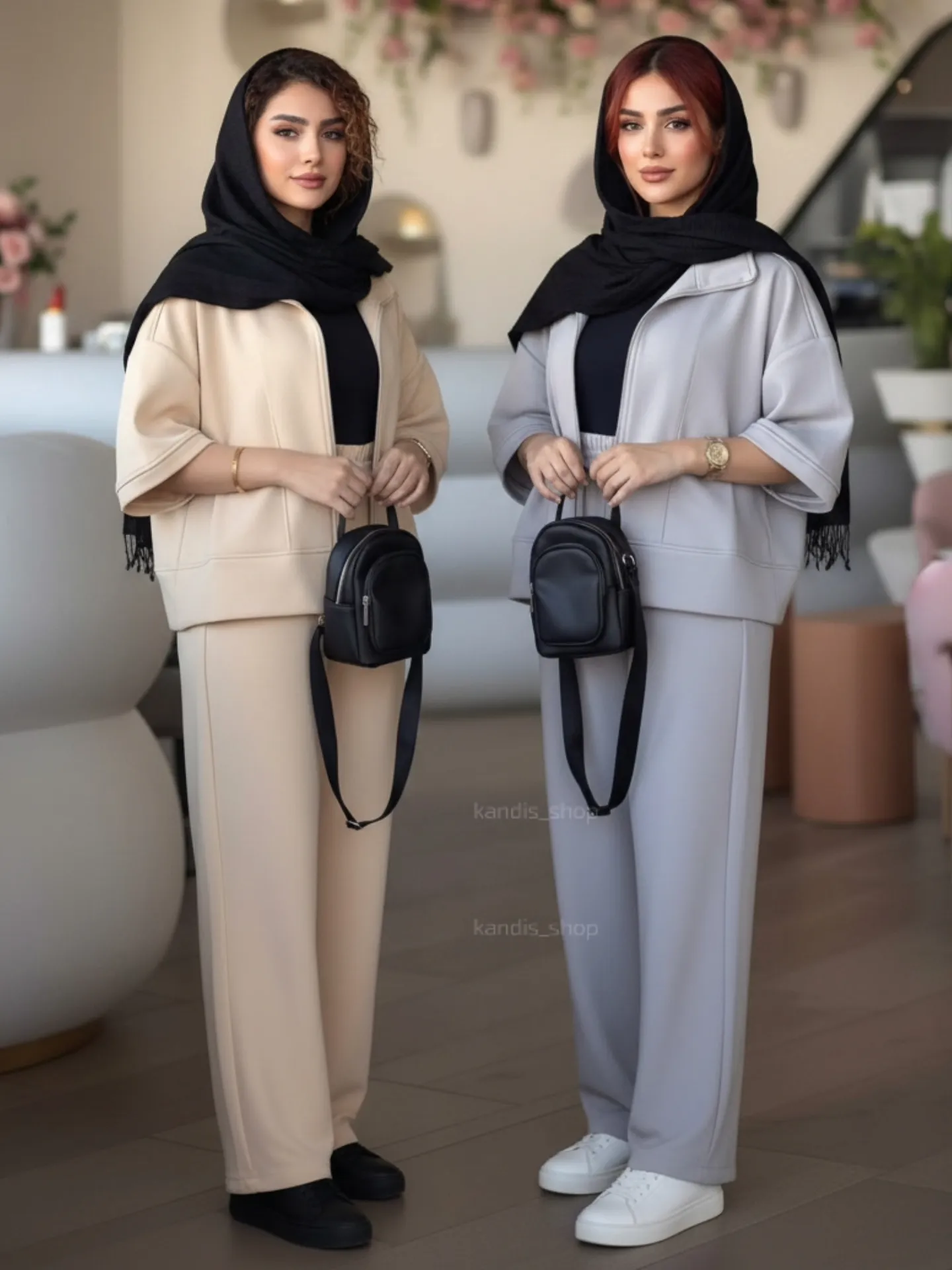 ست بسیار شیک و با کیفیت مناسب تا سایز 50 در چند رنگ زیبا برای خانم های شیک پوش