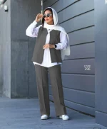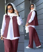 ست سه تیکه بسیار شیک و با کیفیت مناسب تا سایز 50 در چند رنگ زیبا برای خانم های شیک پوش