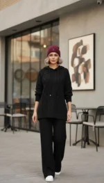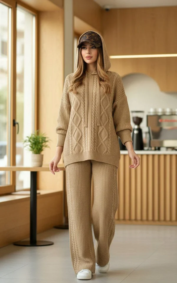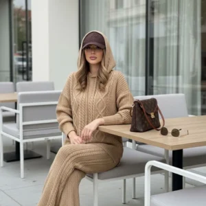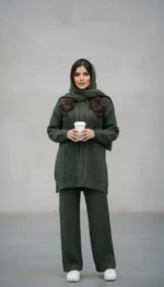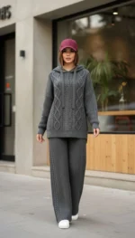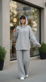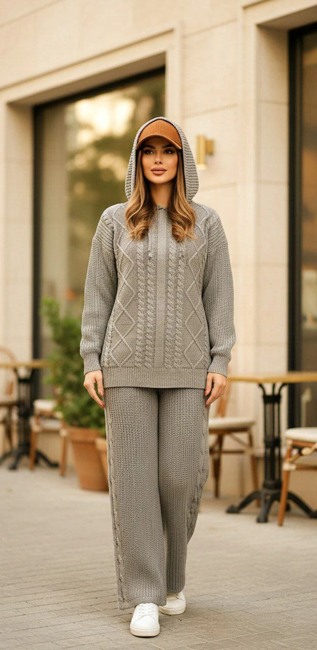 🧵ست هودی کلاهدار  با شلوار بافت با کیفیت و کاربردی