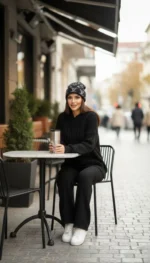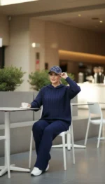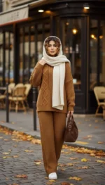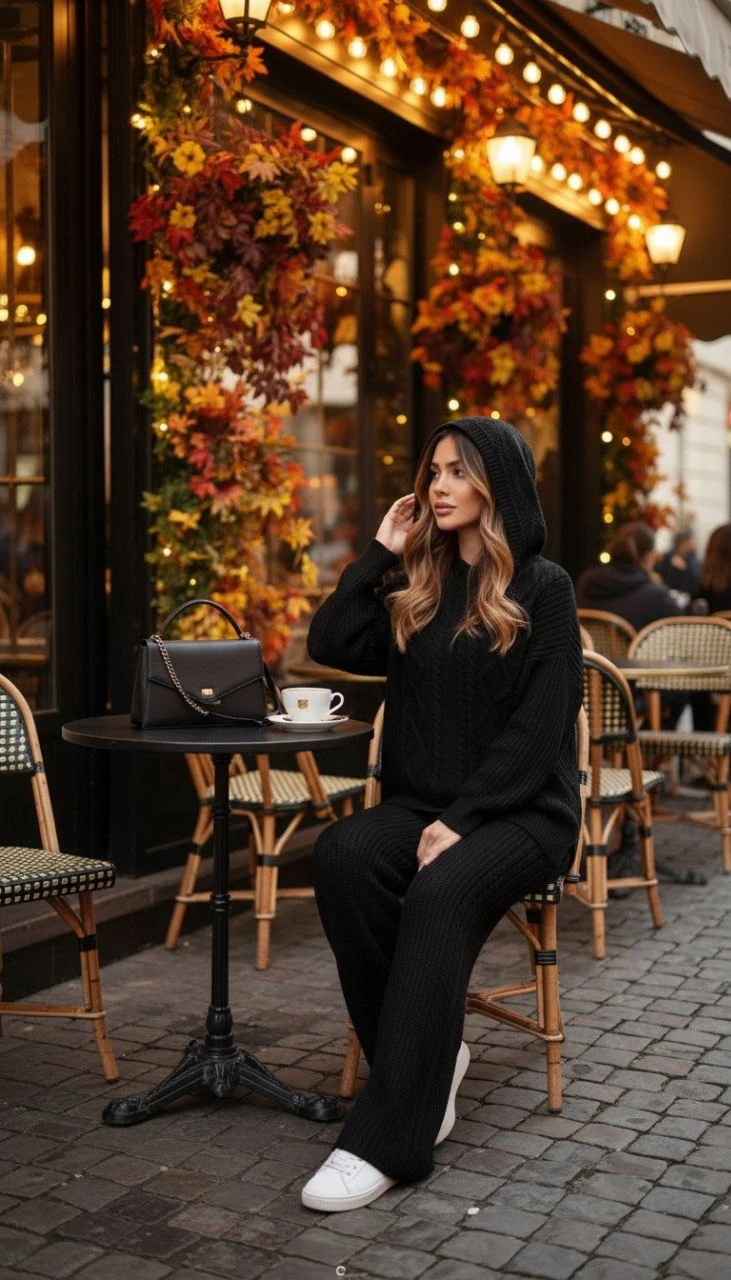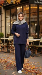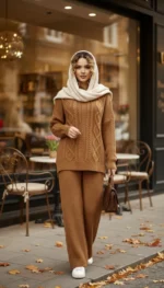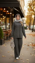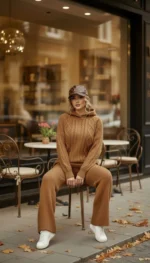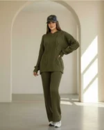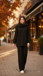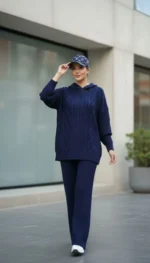 ست هودی کلاهدار با شلوار بافت پرنسا
