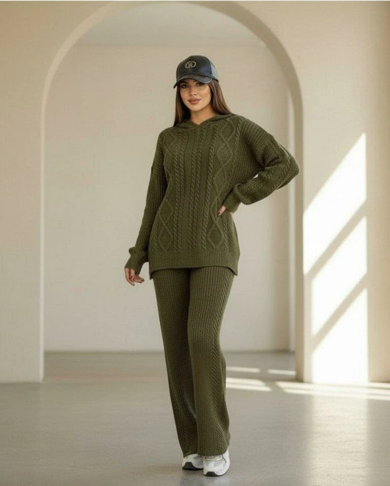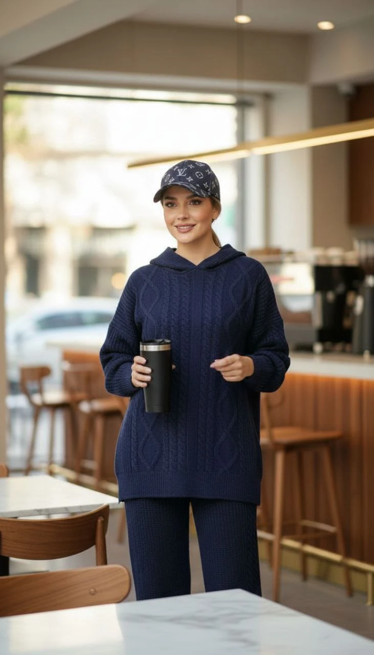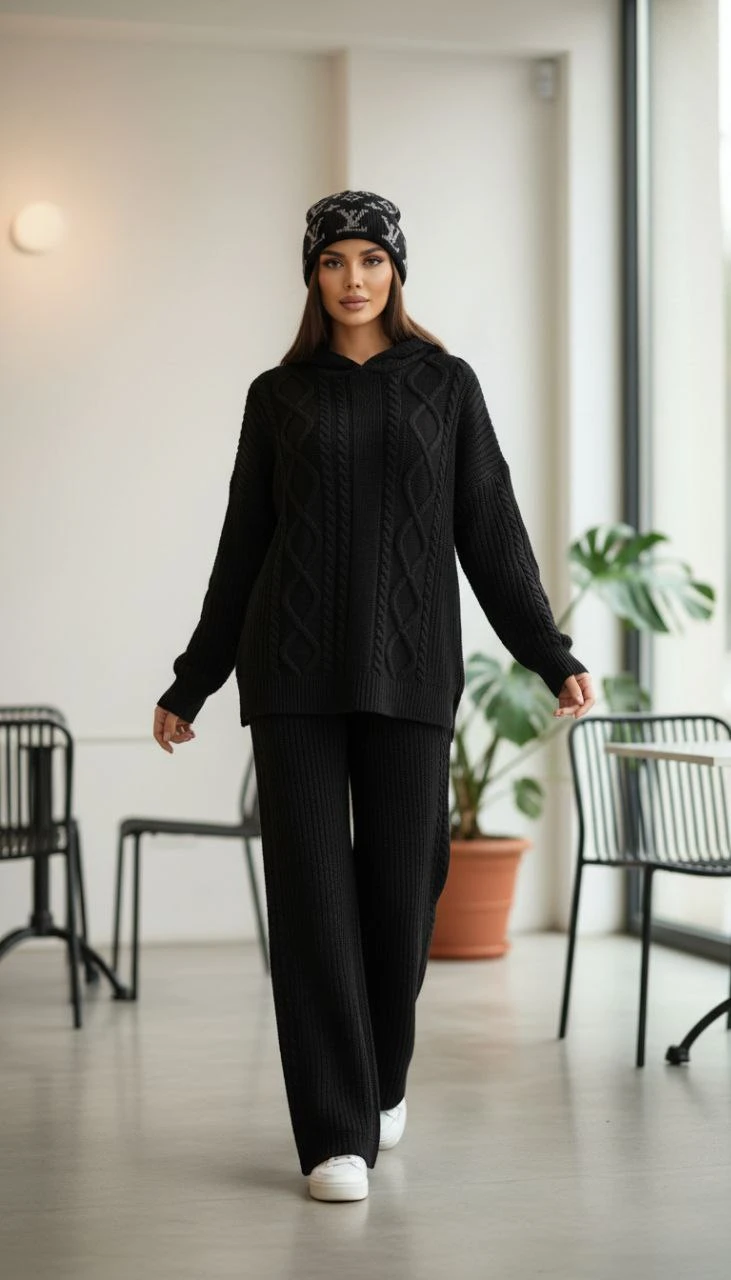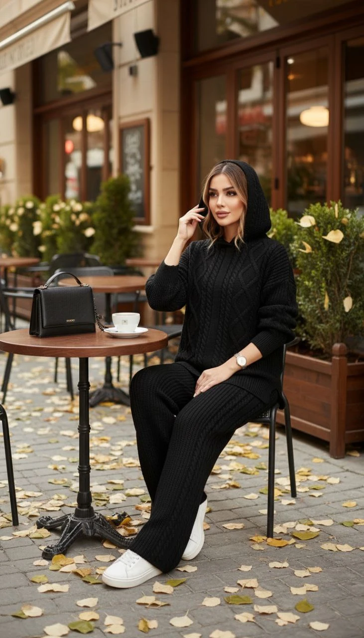 🧵ست هودی کلاهدار با شلوار بافت با کیفیت و کاربردی