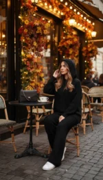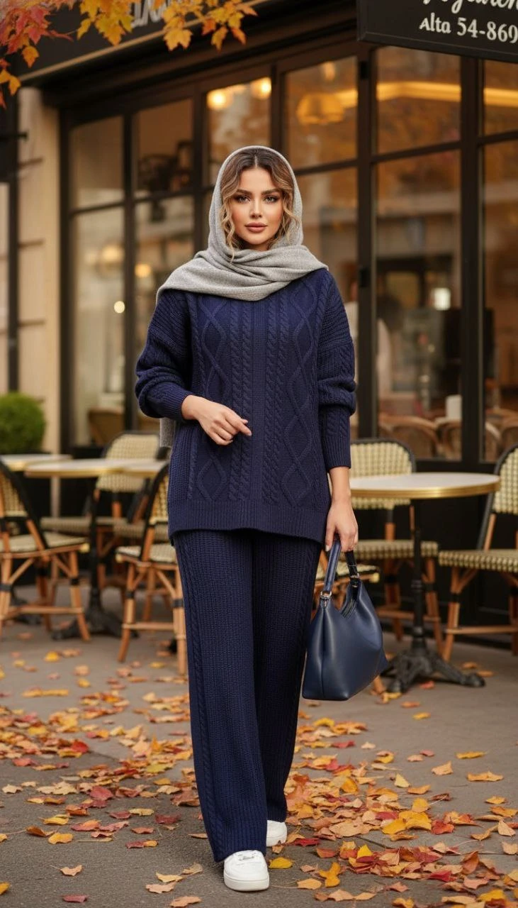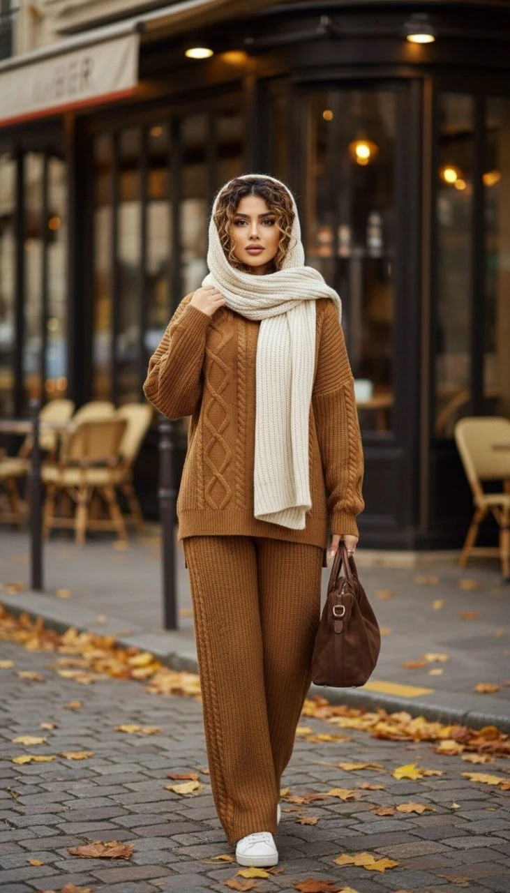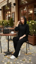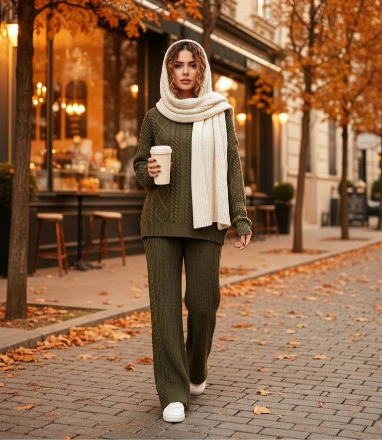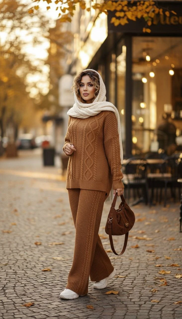 🧵ست هودی کلاهدار با شلوار بافت با کیفیت و کاربردی