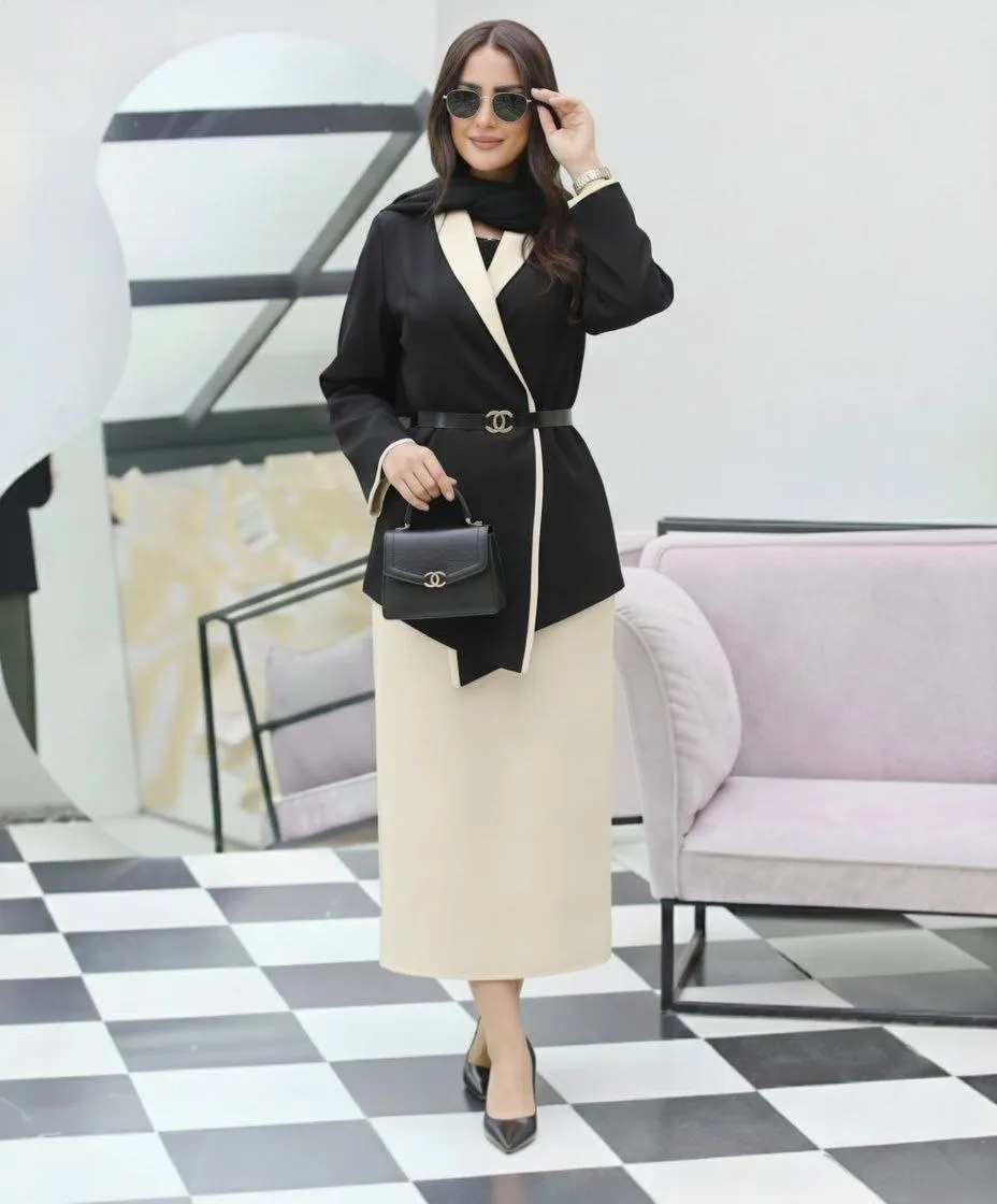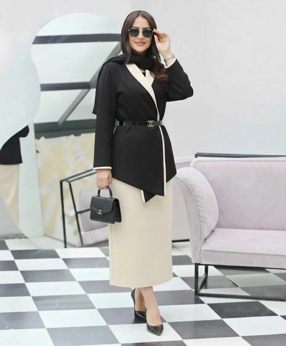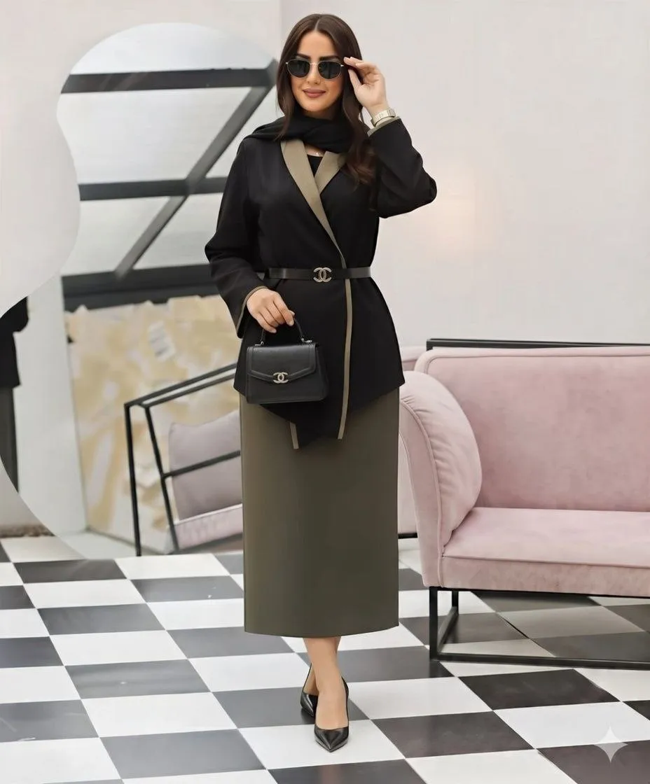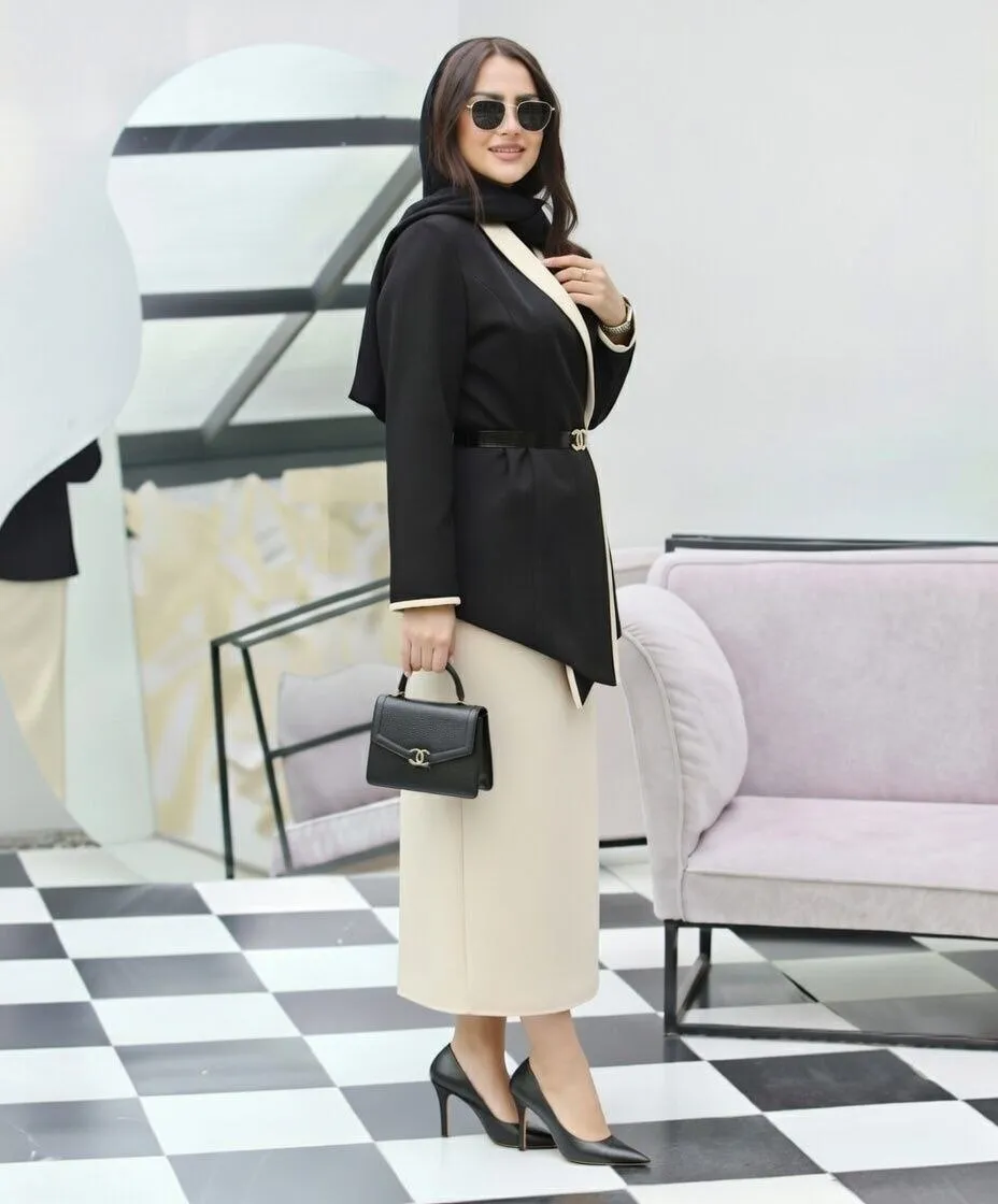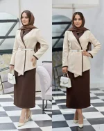✨ بسته شدن جلو کت با کمربند (قابل تنظیم و اندامیتر شدن فرم)