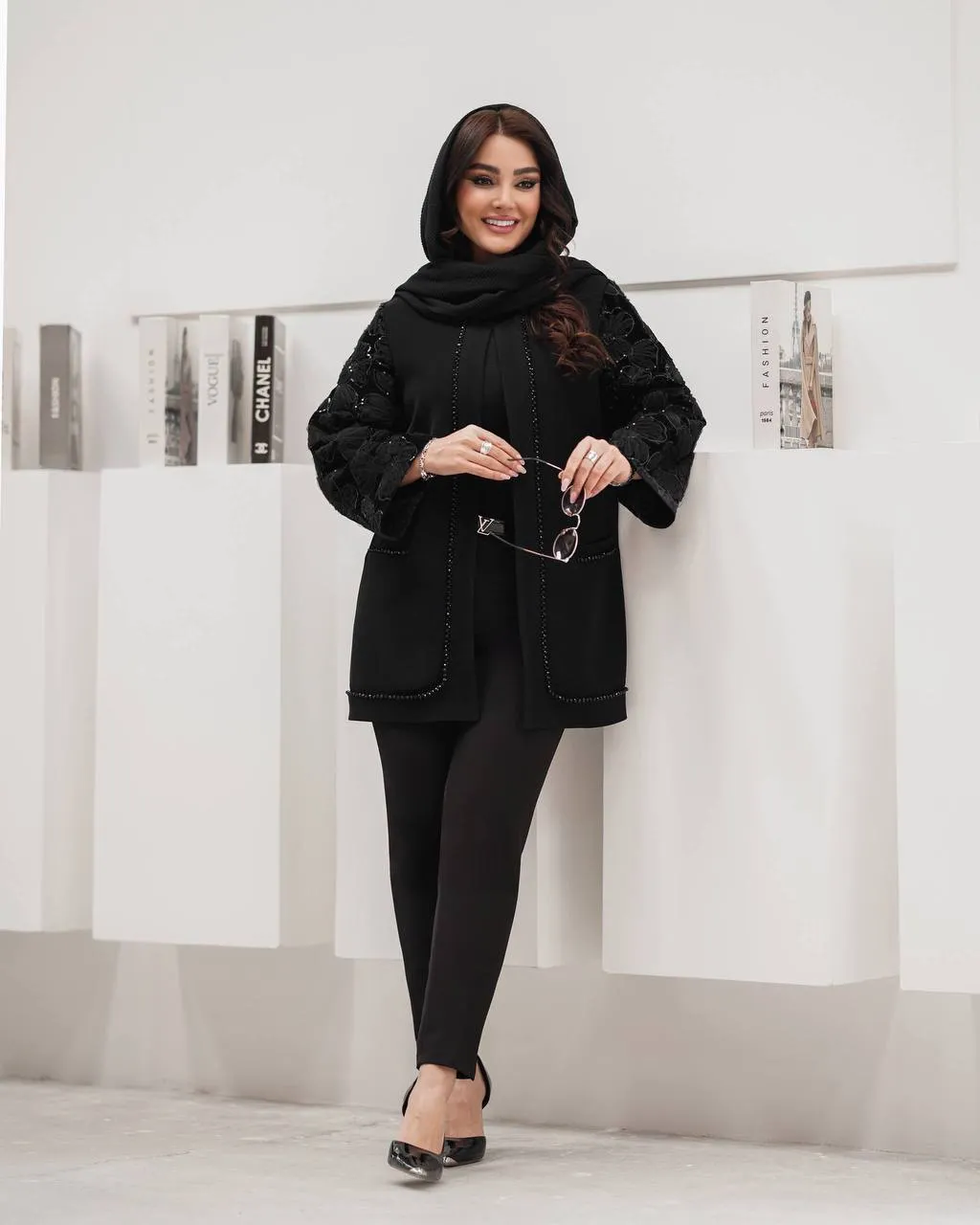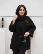 مانتوی مجلسی بسیار شیک و با کیفیت مناسب تا سایز 50 در چند رنگ زیبا برای خانم های شیک پوش
