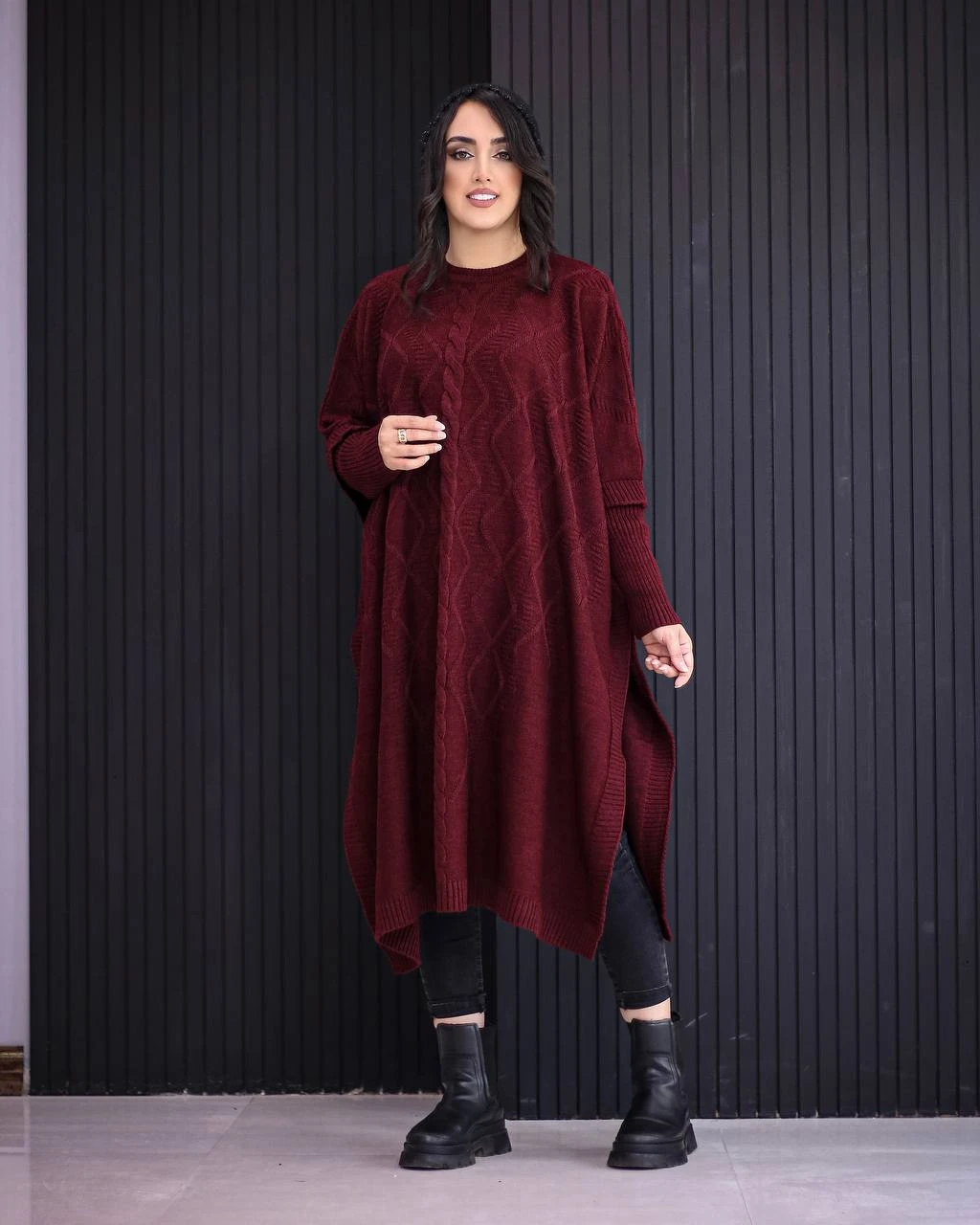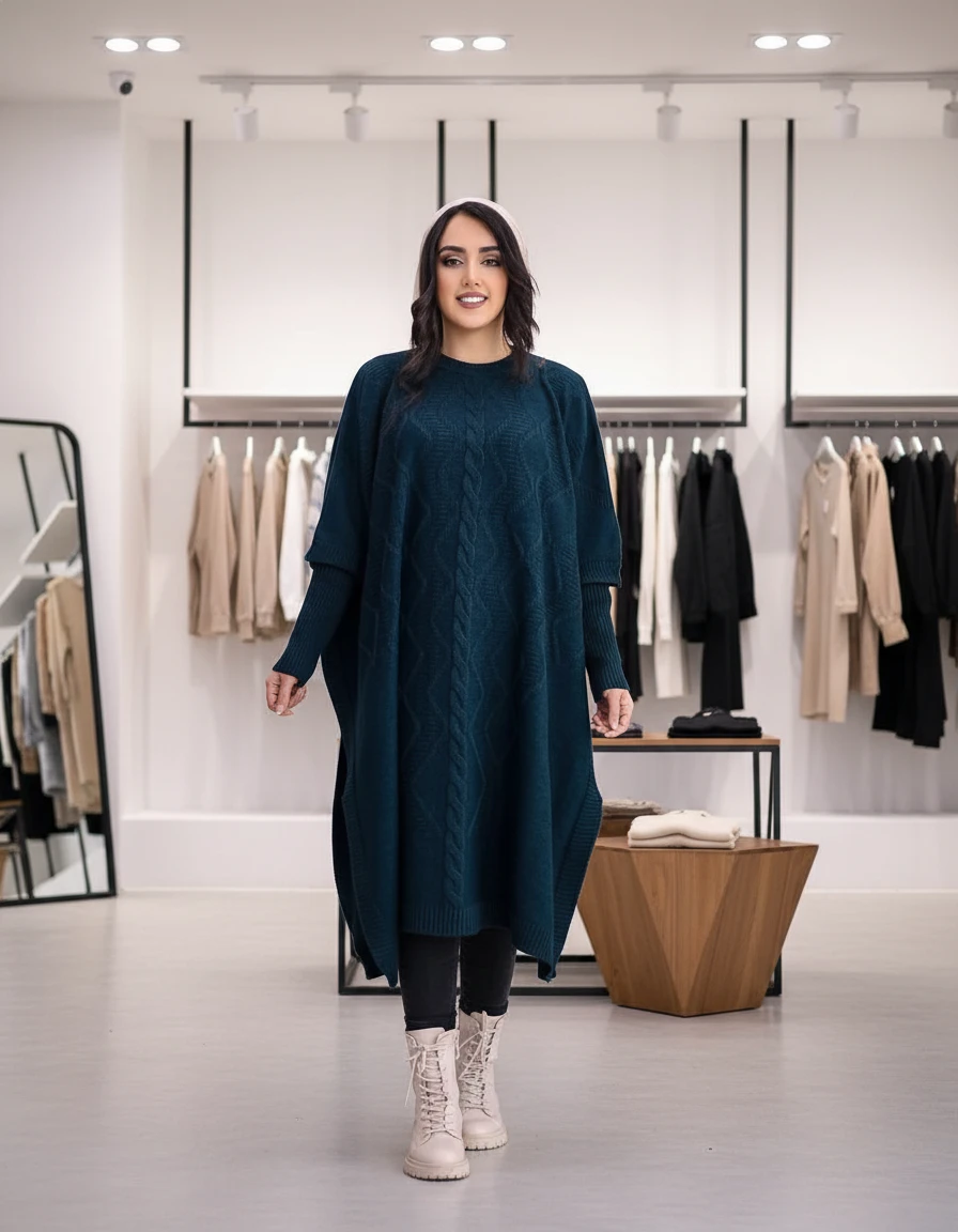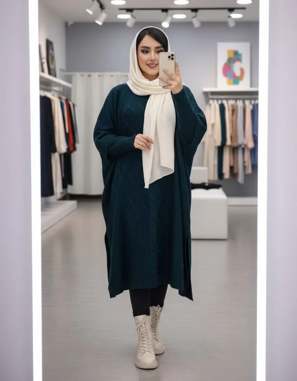 مانتوی بافت پانچ سایز بزرگ بسیار شیک و با کیفیت و با قیمت عالی مناسب تا سایز 54 در چند رنگ زیبا برای شیک پوشان