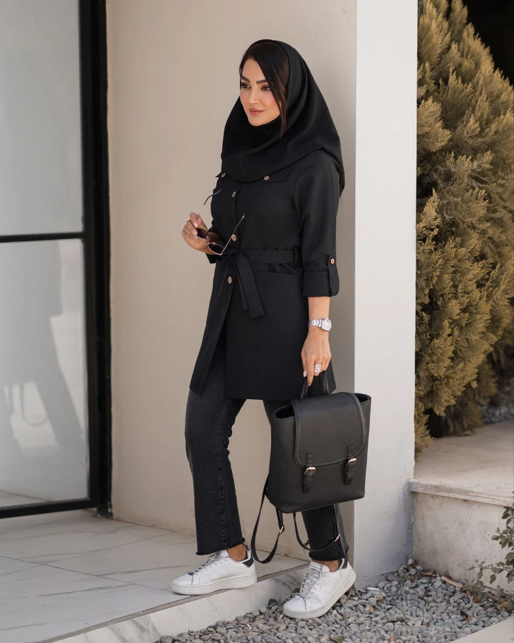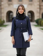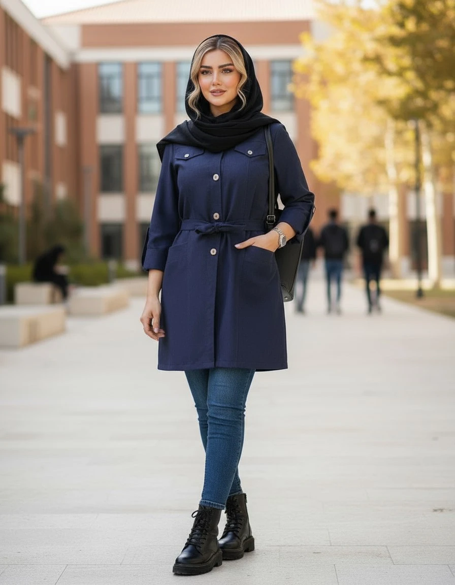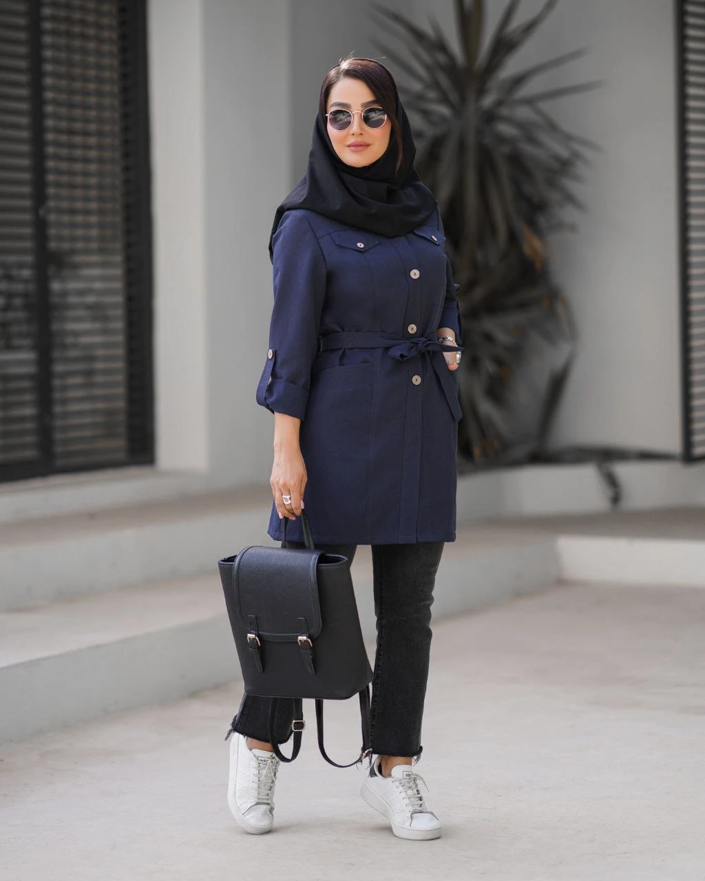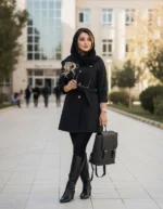 مانتوی دانشجویی بسیار شیک و با کیفیت مناسب تا سایز 48 در دو رنگ زیبا برای خانم های شیک پوش