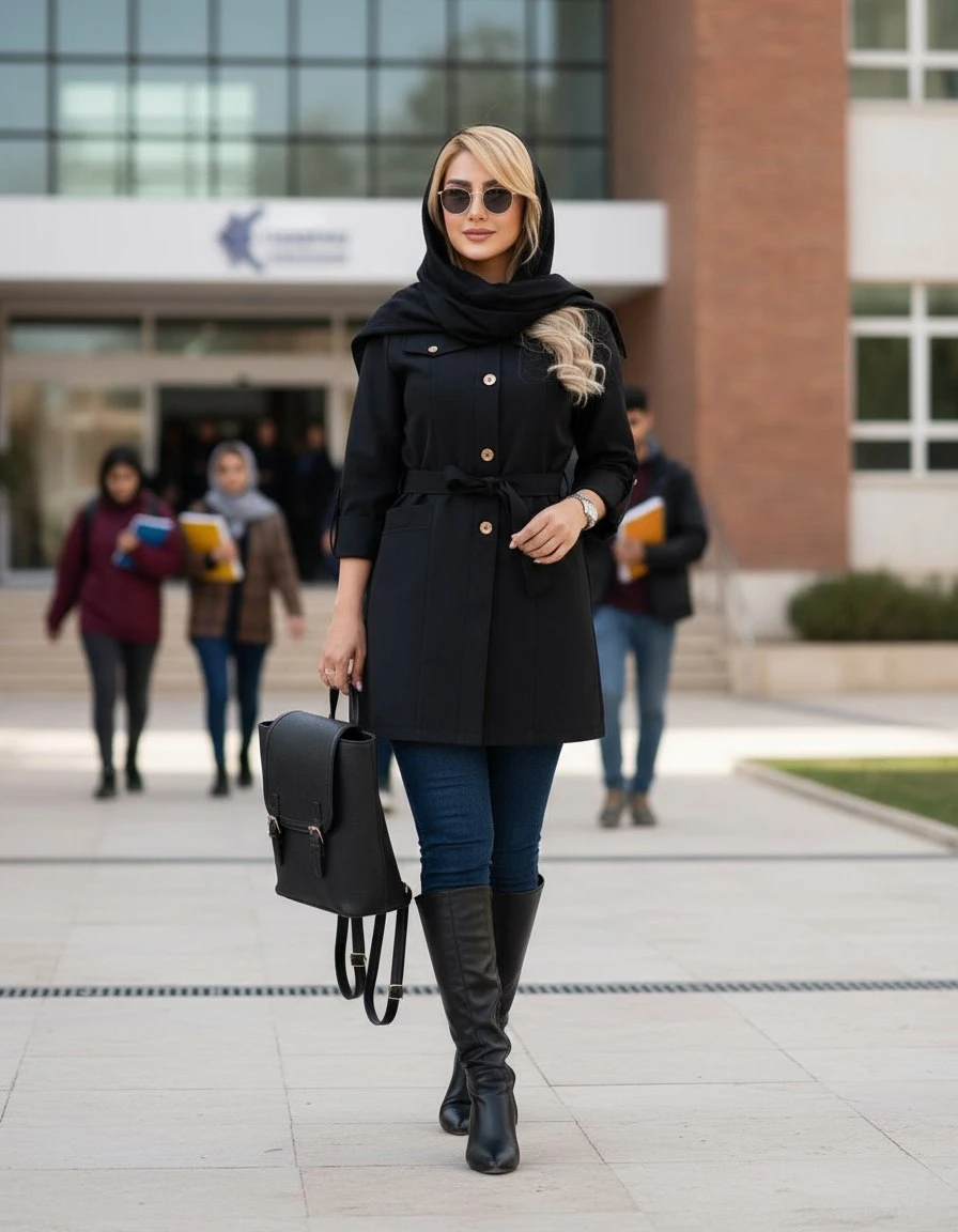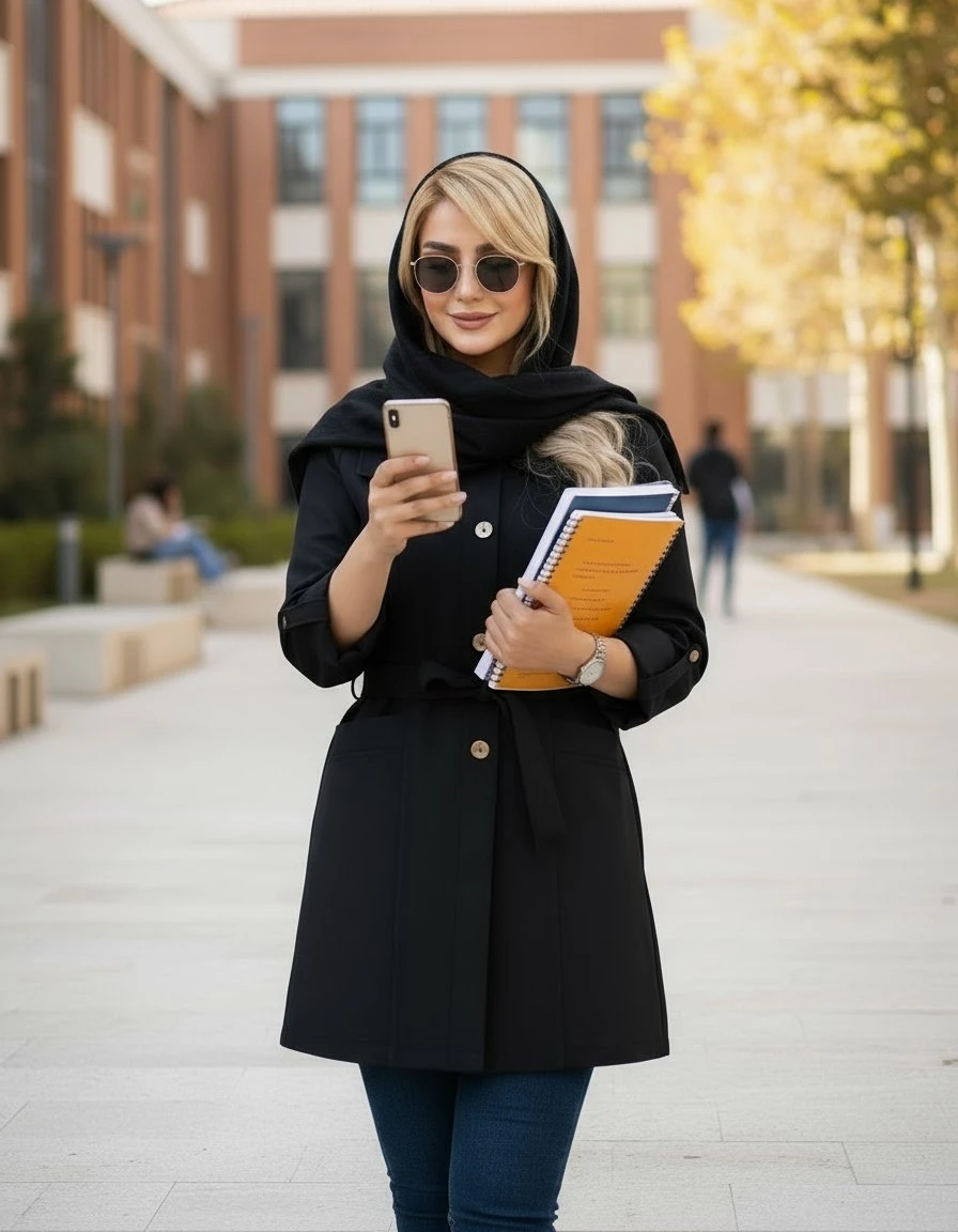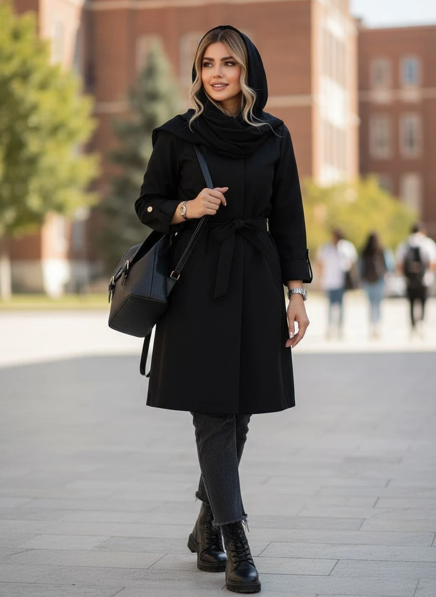 مانتوی دانشجویی بسیار شیک و با کیفیت مناسب تا سایز 48 در دو رنگ زیبا برای خانم های شیک پوش