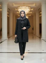 مانتوی مجلسی قواره دار بسیار شیک و با کیفیت مناسب تا سایز بزرگ 56 در چند رنگ زیبا برای خانم های شیک پوش