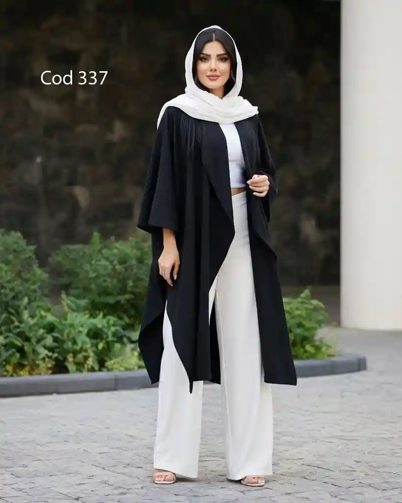 مانتوی عبایی شیک ای بزرگ بسیار شیک و با کیفیت مناسب تا سایز 46 در چند رنگ زیبا برای خانم های شیک پوش