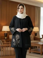 مانتویی خوشدوخت با گلدوزی ظریف روی کار ✨
