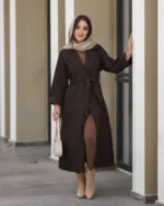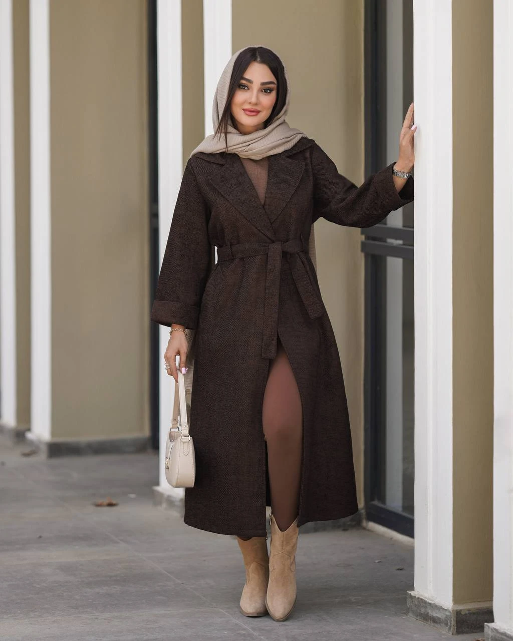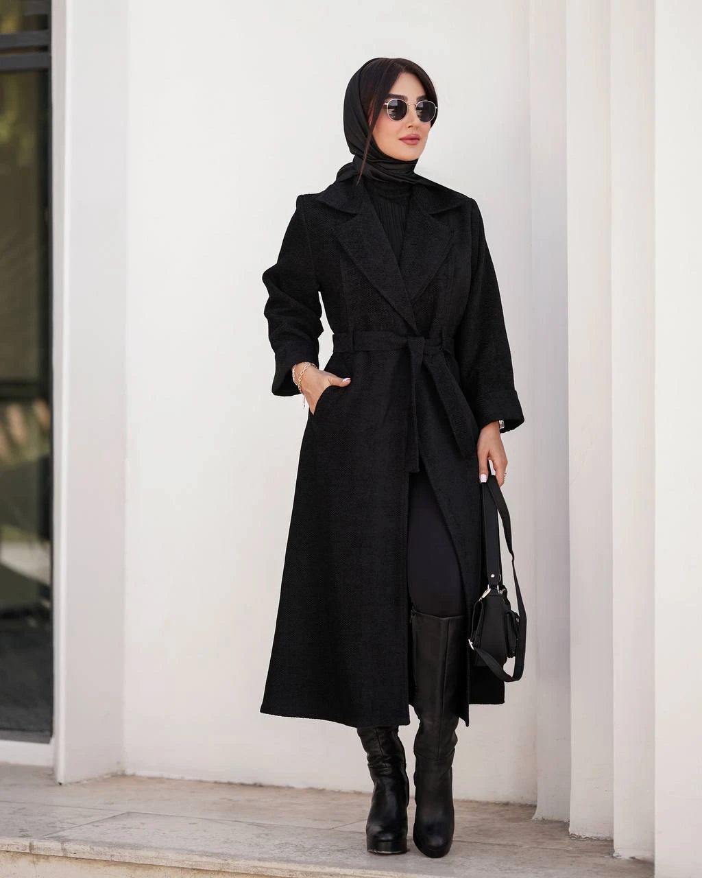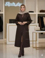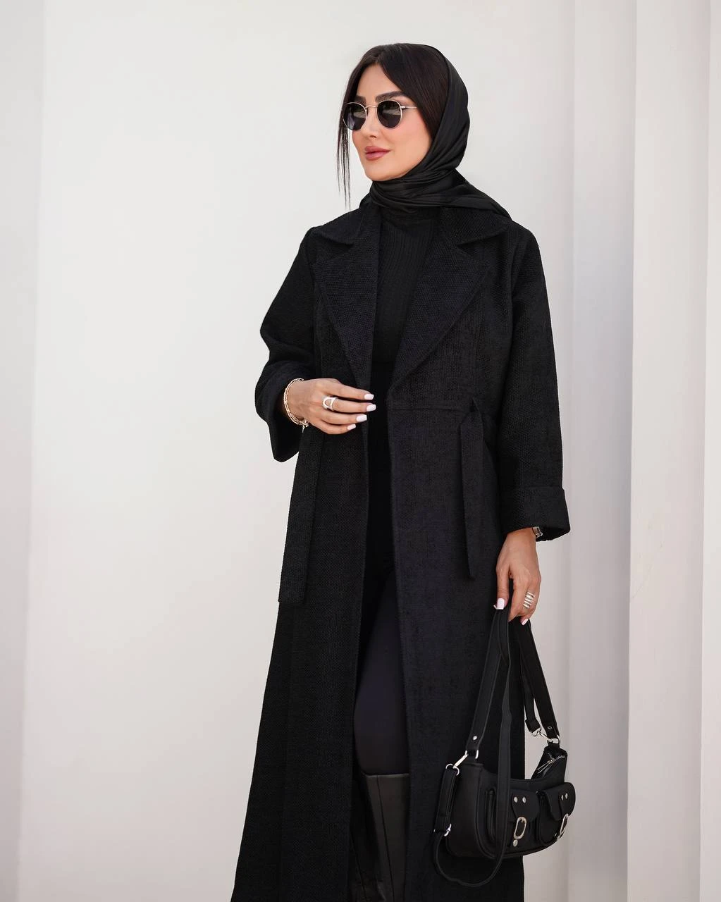 مانتوی بلند مخمل بسیار شیک و با کیفیت مناسب تا سایز 48 در چند رنگ زیبا برای خانم های شیک پوش
