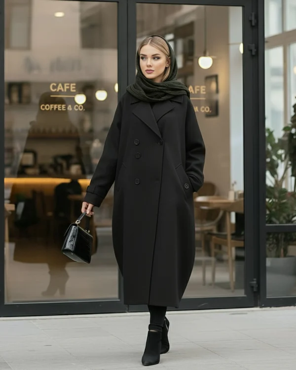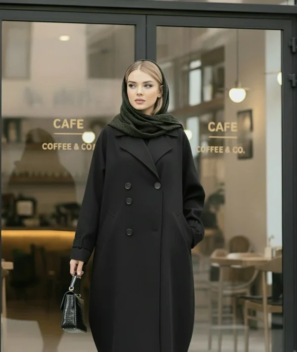 مانتوی پاییزه بلند  بسیار شیک و با کیفیت مناسب تا سایز 52 در چند رنگ زیبا برای خانم های شیک پوش