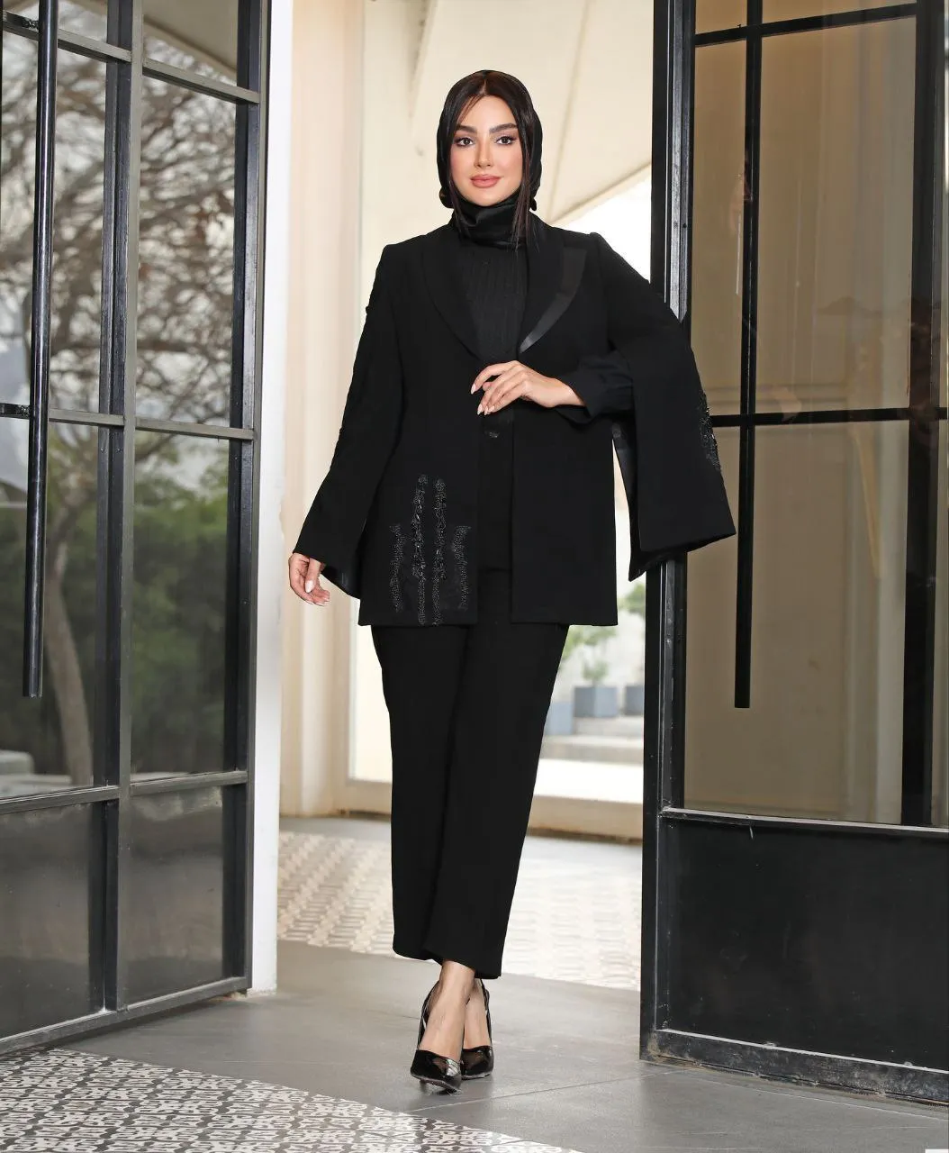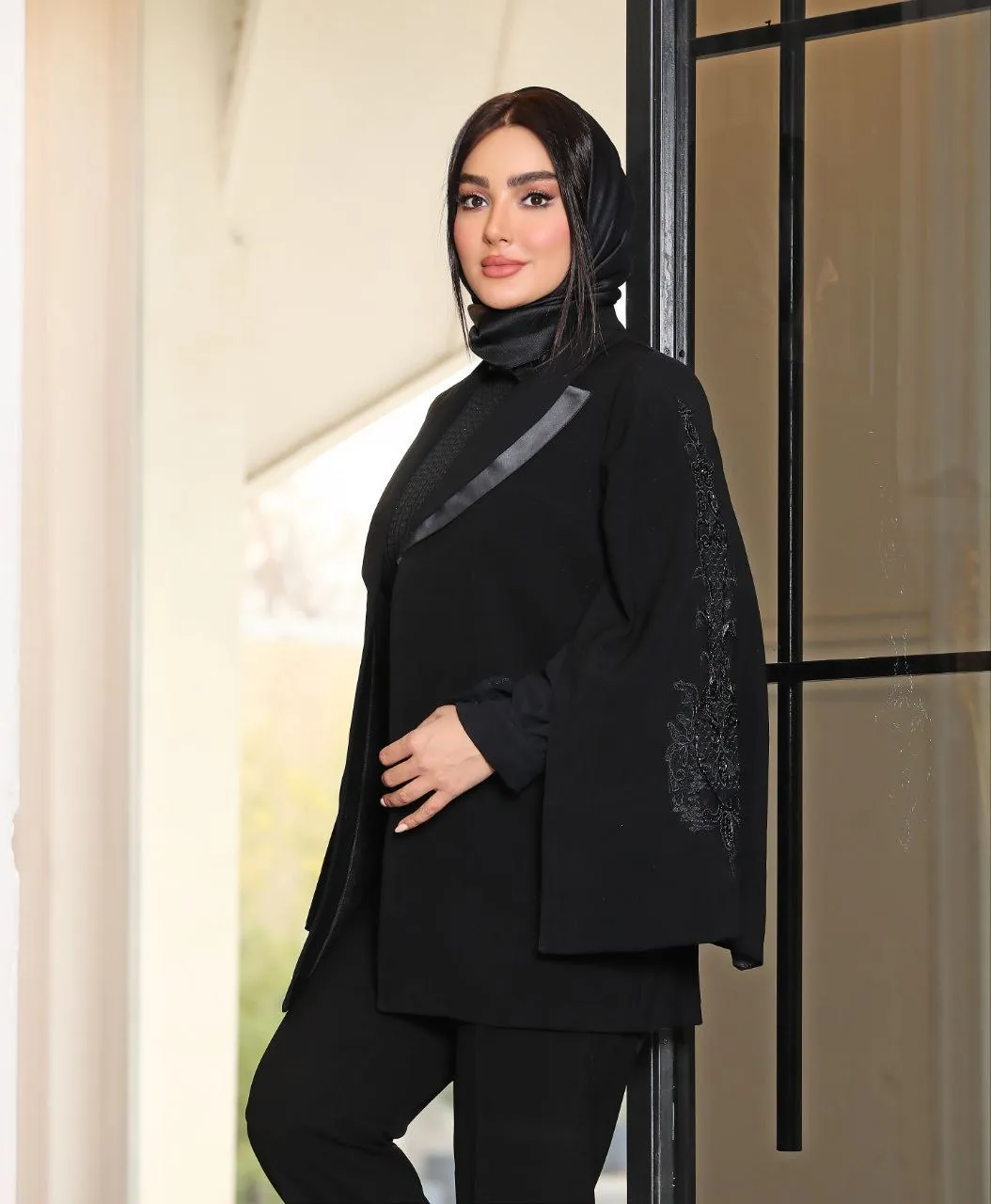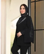 🧵جنس پارچه : کرپ مرویجت جت بلک/داخل لایی پرشین/آستین ۲تیکه و گلدوزی و مرواریددوزی با دست