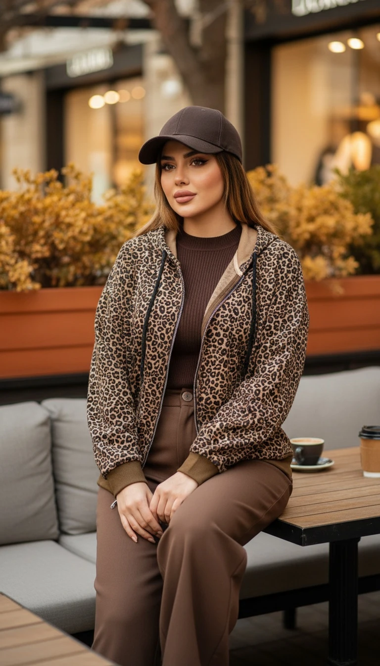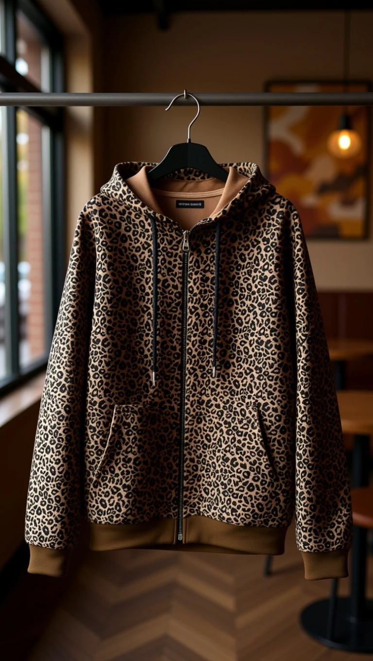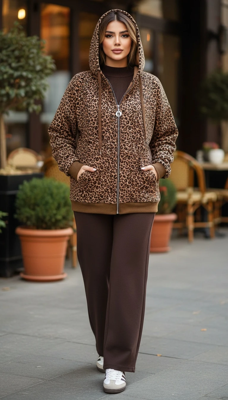 🧶 یه  هودی کلاه دار با طرح ترند و همیشه مد پلنگی🐆