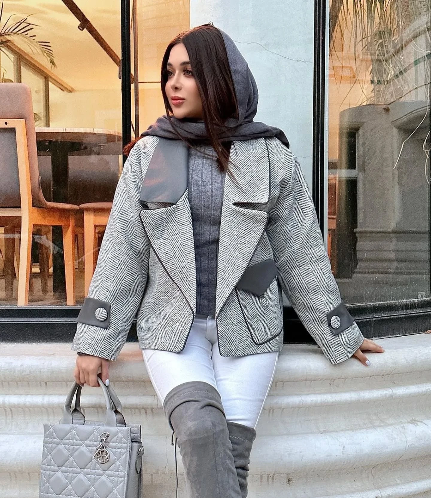 خاکستری هم که رنگ محبوب پاییز و زمستونه، با طرح جذاب جناقی😍