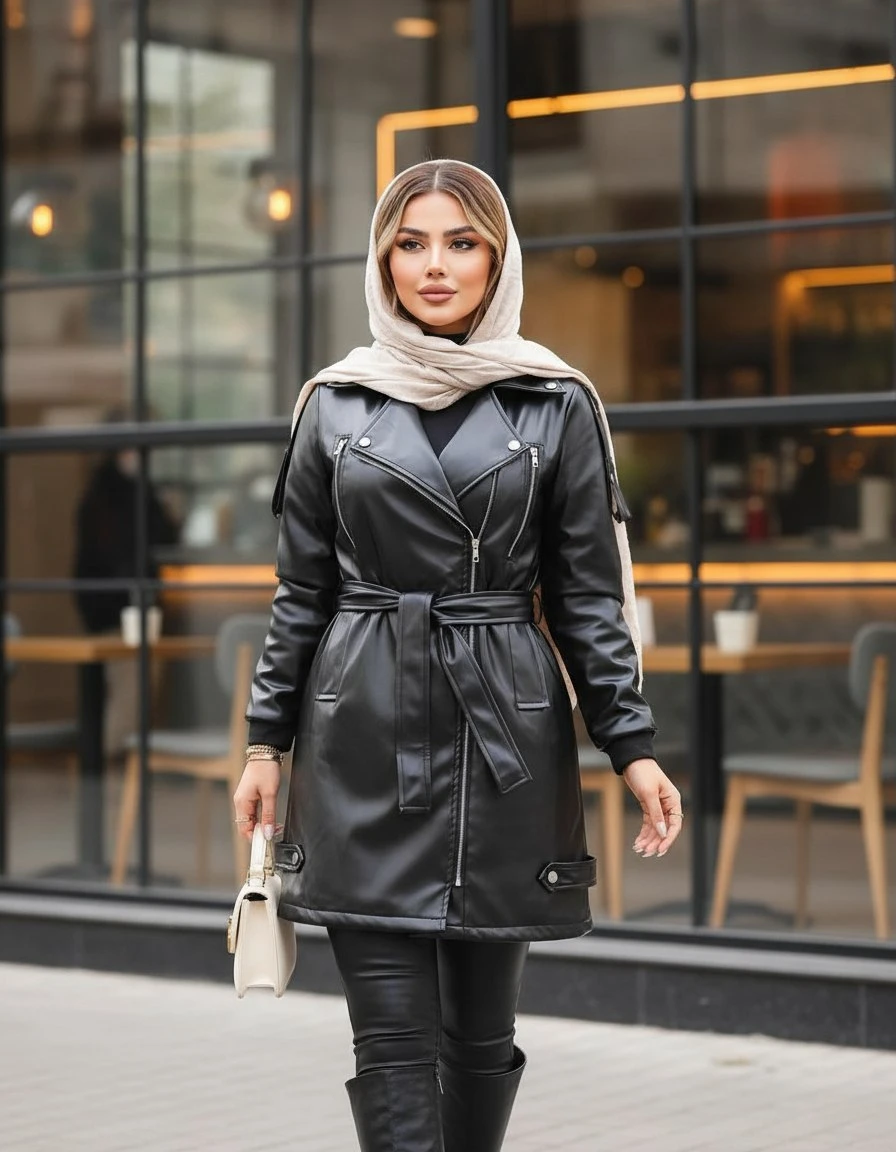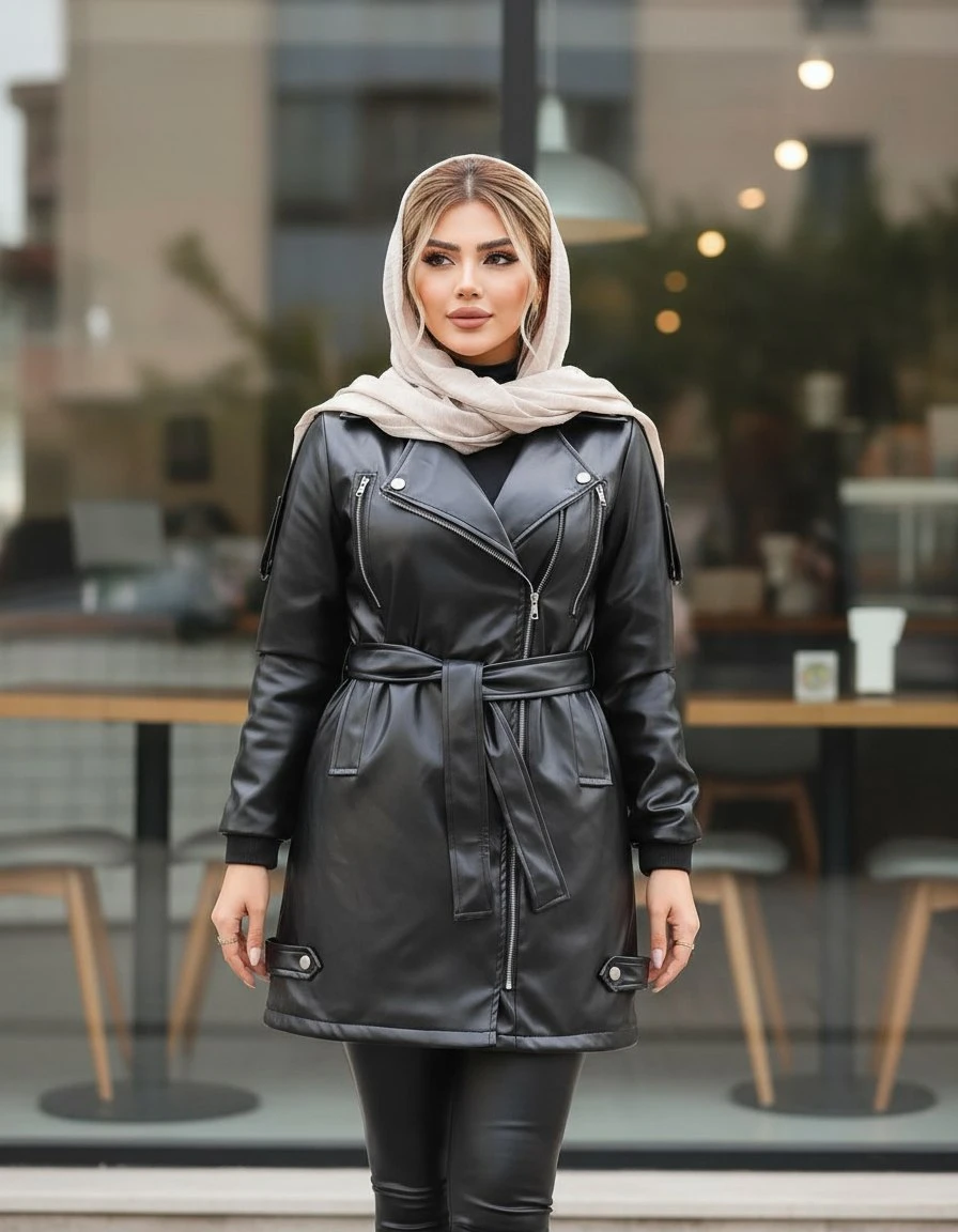 پالتوی چرم بسیار شیک و با کیفیت مناسب تا سایز 48 در چند رنگ زیبا برای خانم های شیک پوش