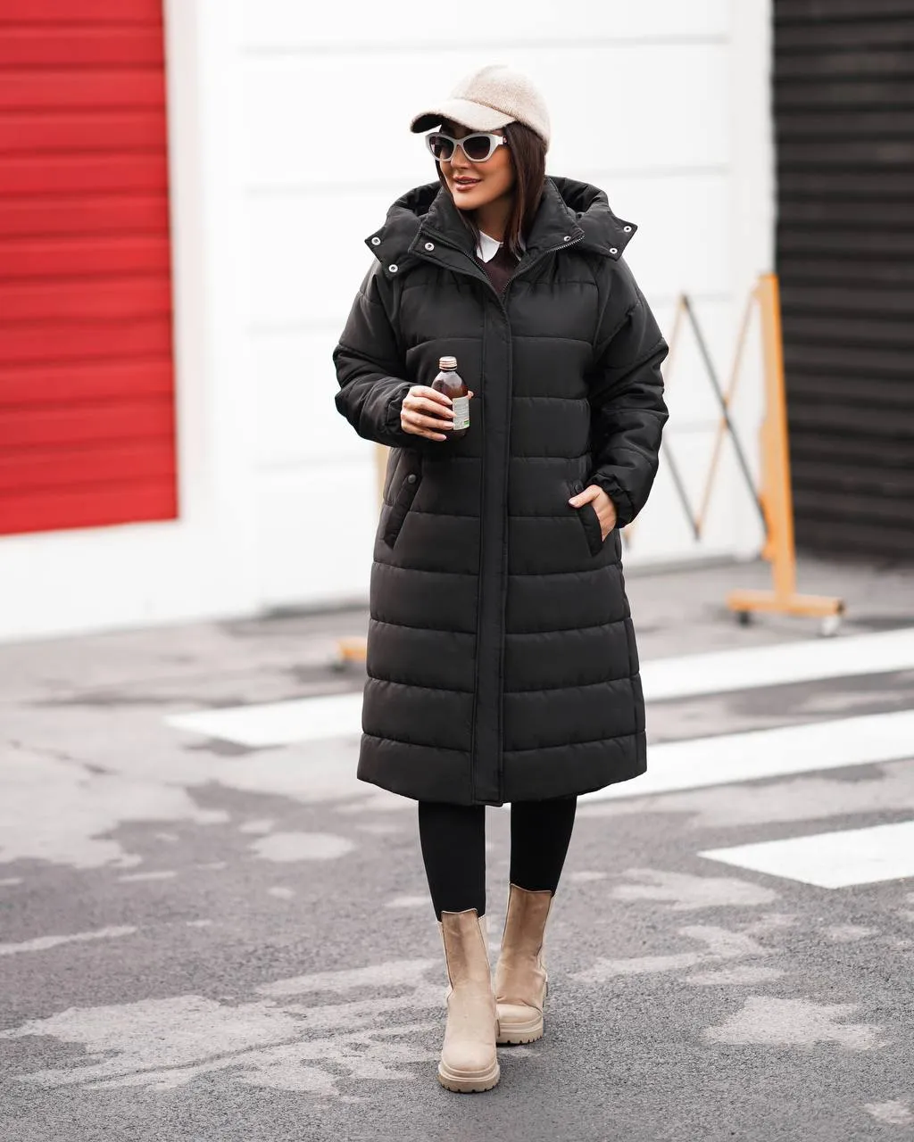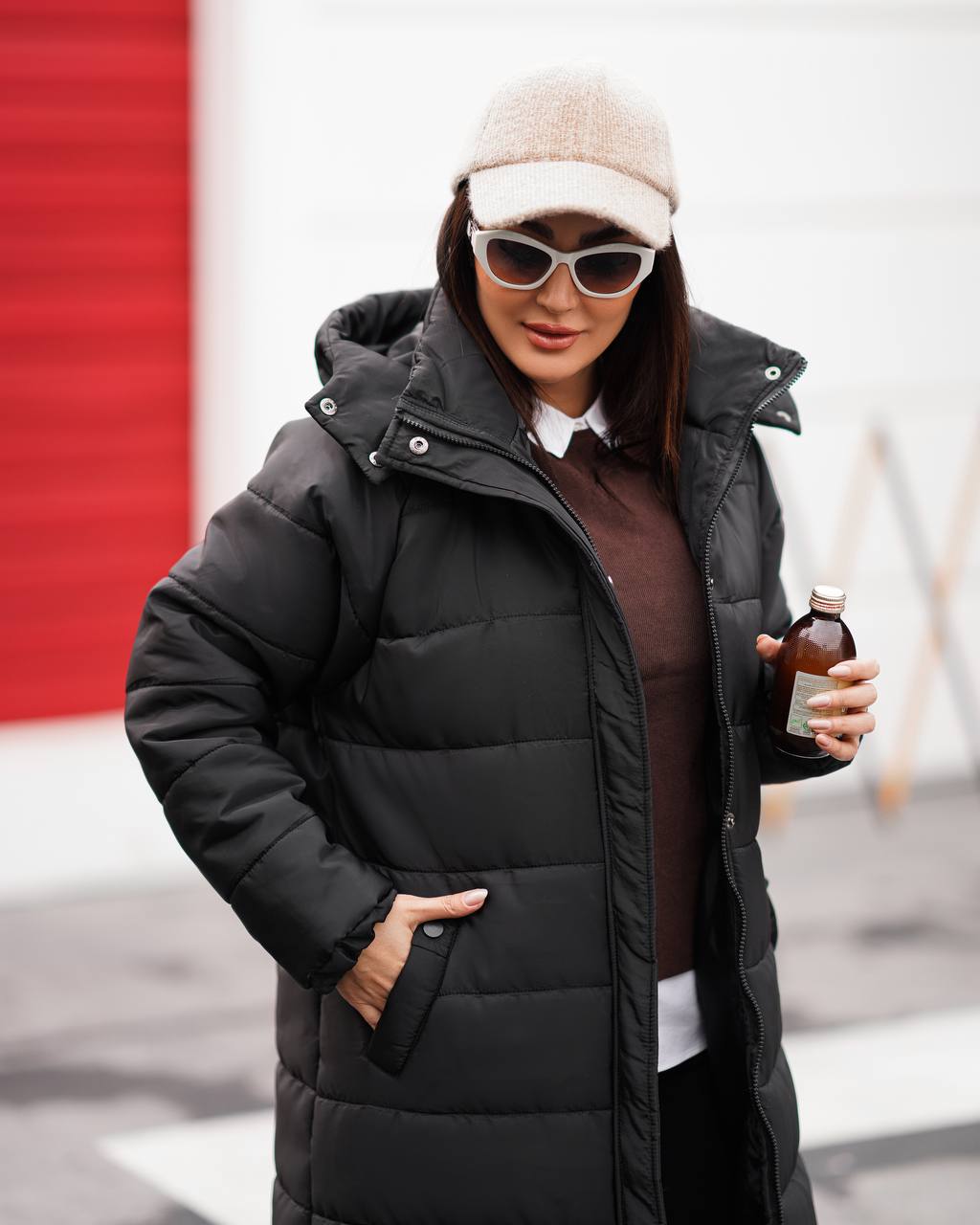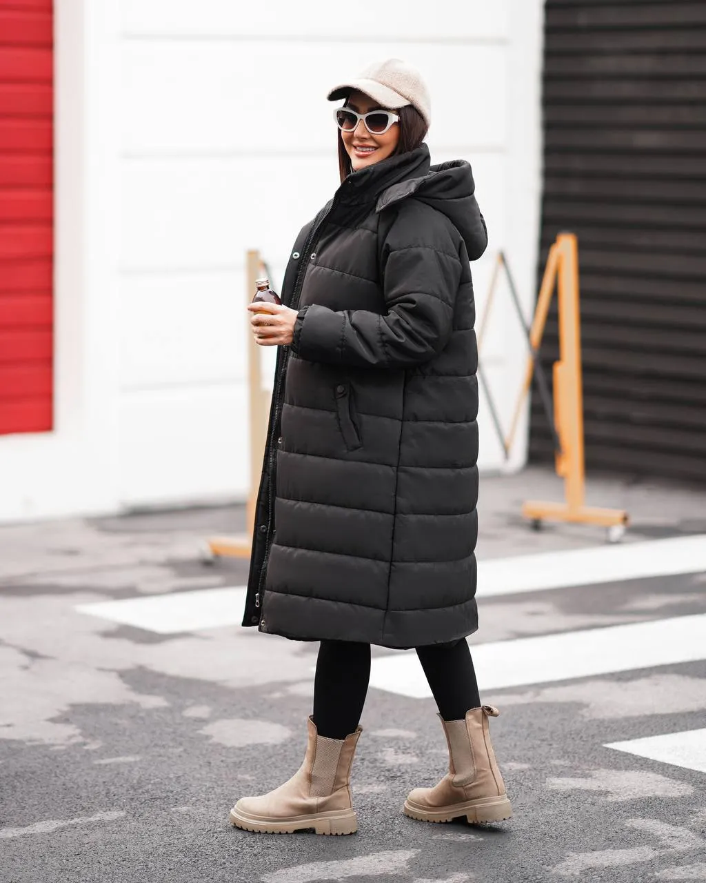 🟢کاپشن کلاهدار بلند امبوردی مدل آتریسا کد ۱۶۶