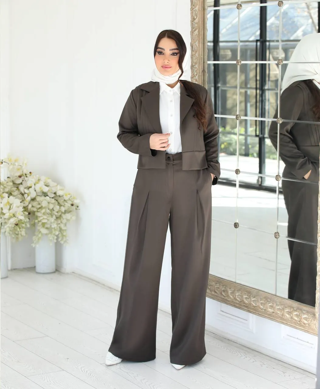 🧥مدل: ست کت کراپ و شلوار بگ پیله دار پشت کش