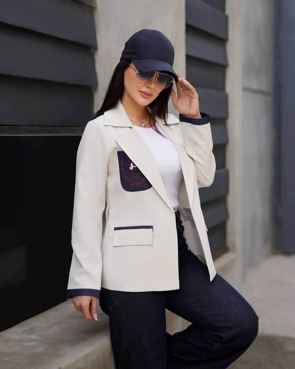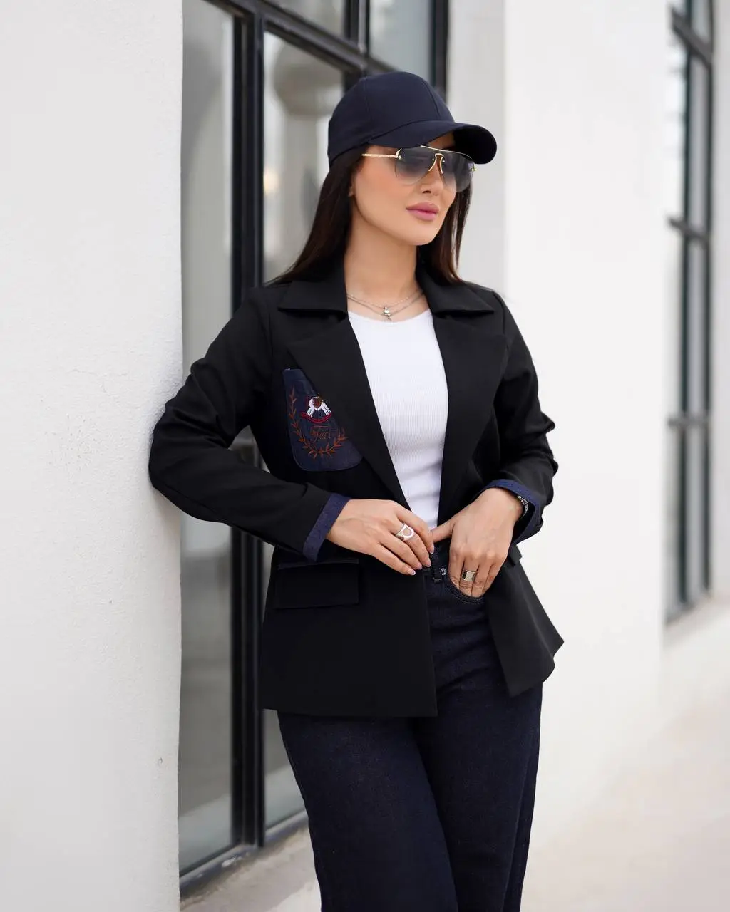 🧿 جنس:کرپ بزیاق درجه یک حاشیه کار جین و روی جیب گلدوزی شده