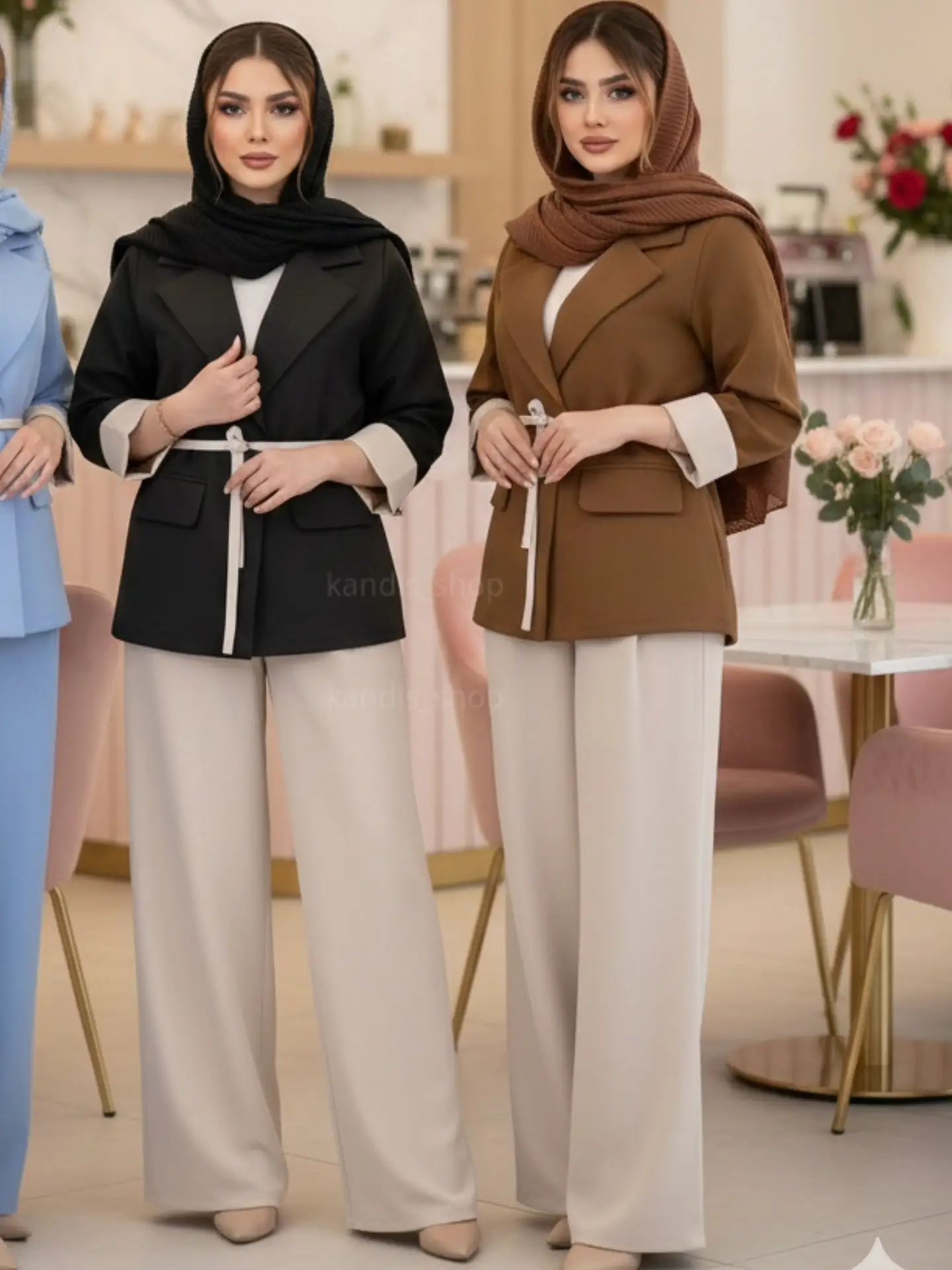 سبز, ابی, مشکی, سورمه ای, نسکافه ای, کت استخوانی شلوار نسکافه ای