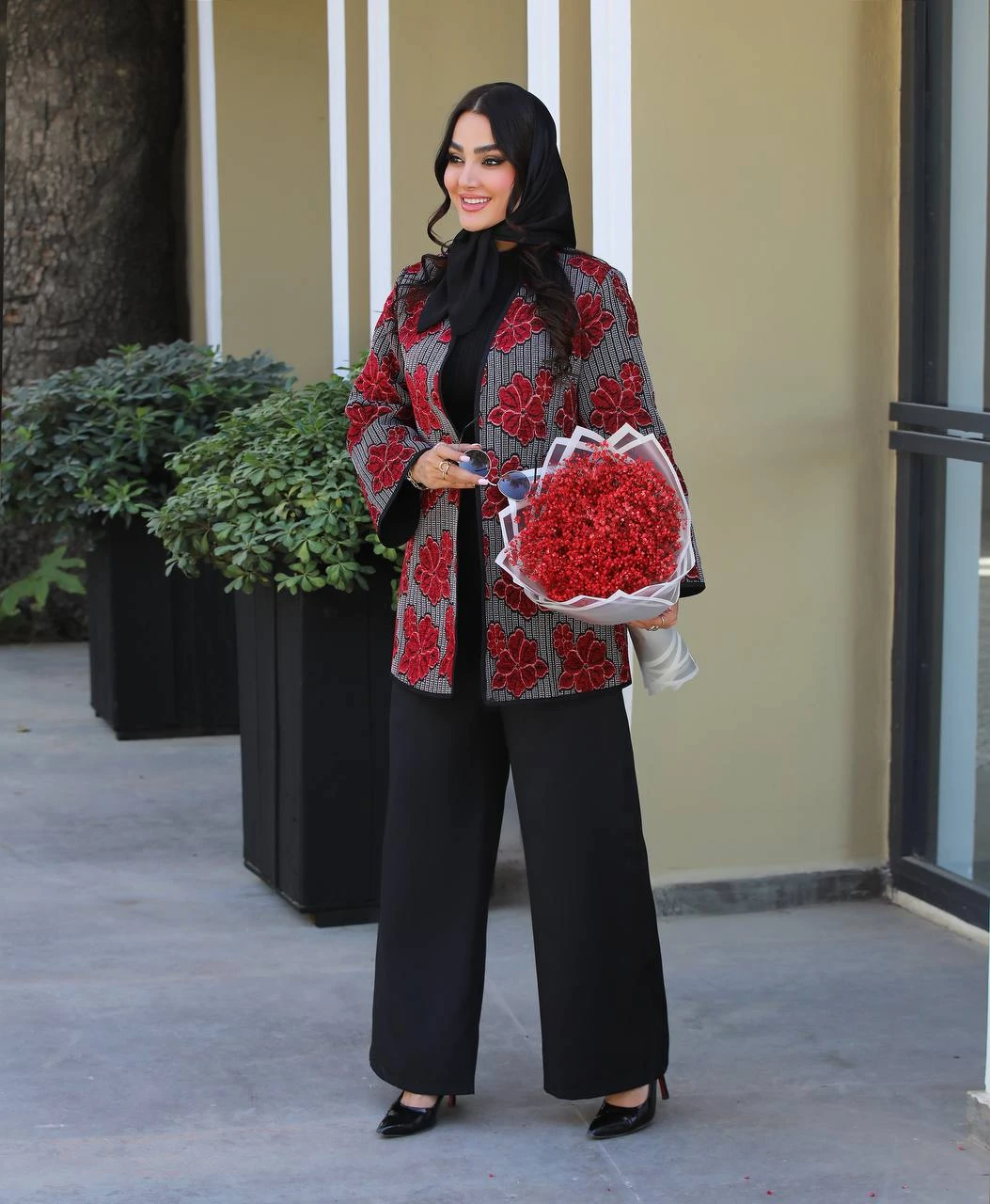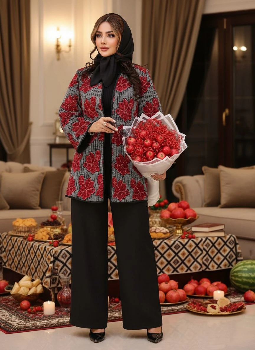 جنس کت :ترکیب تافته سوزن دوزی و مخمل«قسمت گلها مخمل هستند»