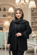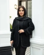 یک مانتو مجلسی شیک و لوکس مناسب استایل عید و مهمانیهای خاص، با طراحی مزونی و ظریف.
