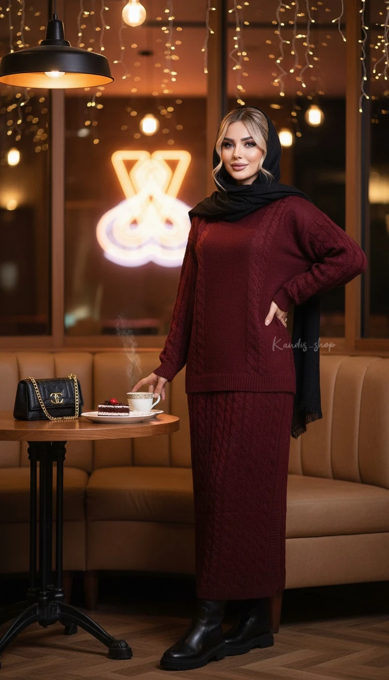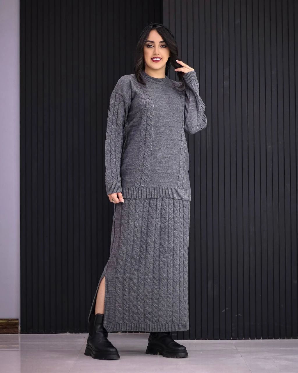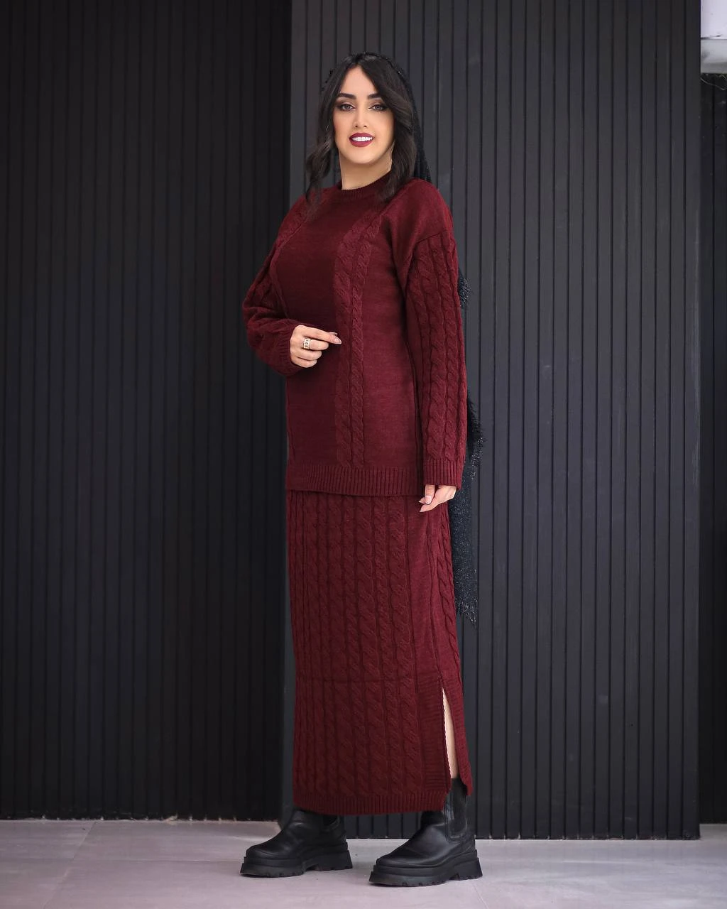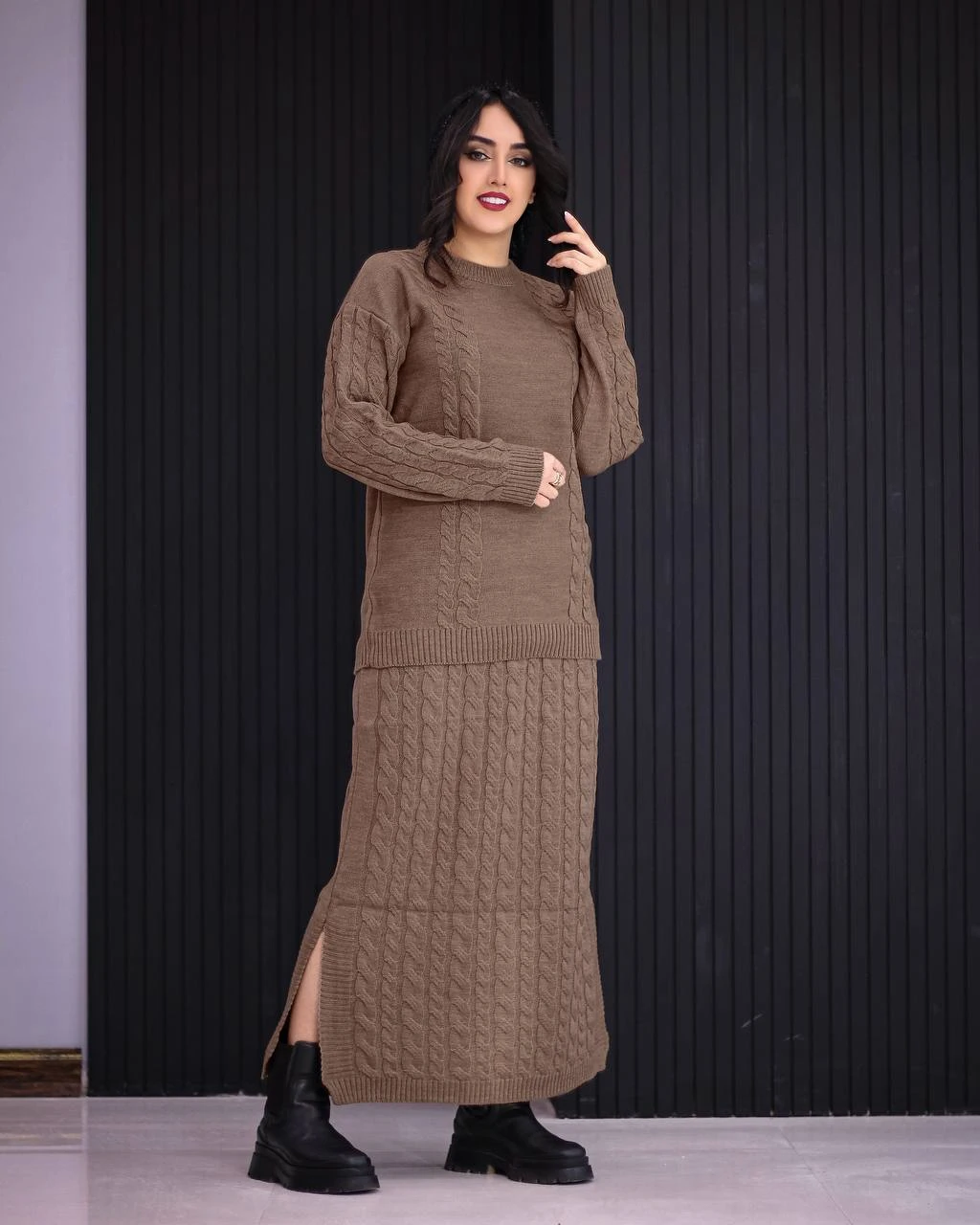 🍂 ست بلوز و دامن بافت پاییزه مدل روشنا🍂