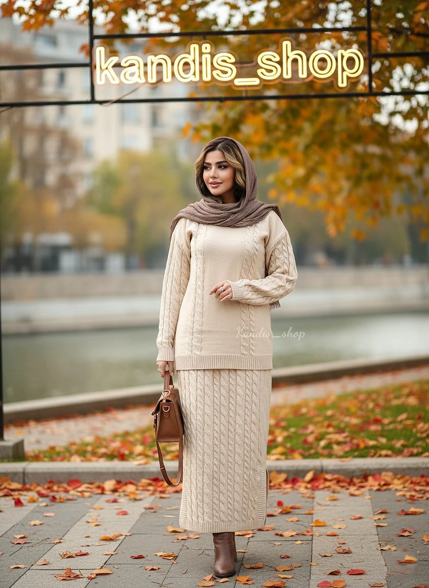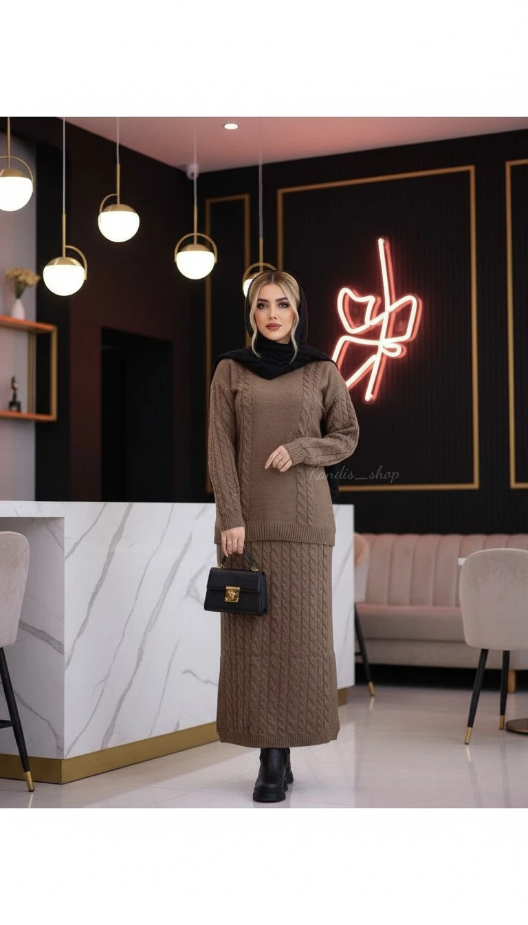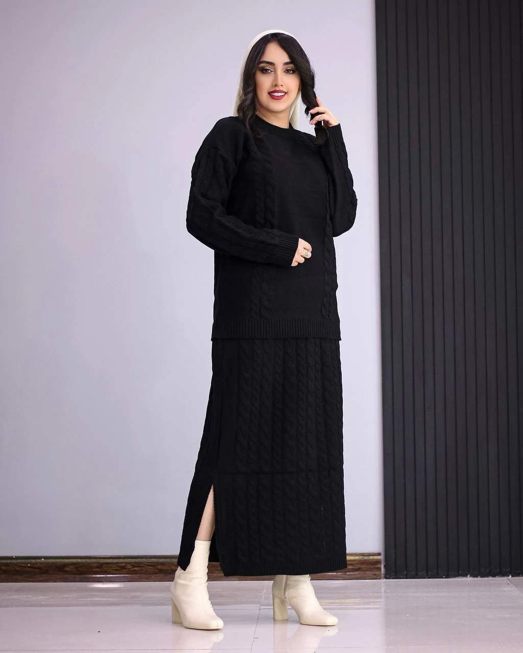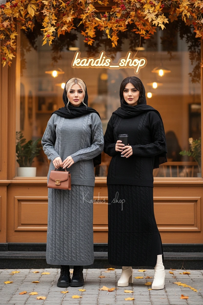 🍂 ست بلوز و دامن بافت پاییزه مدل روشنا🍂 ترکیب