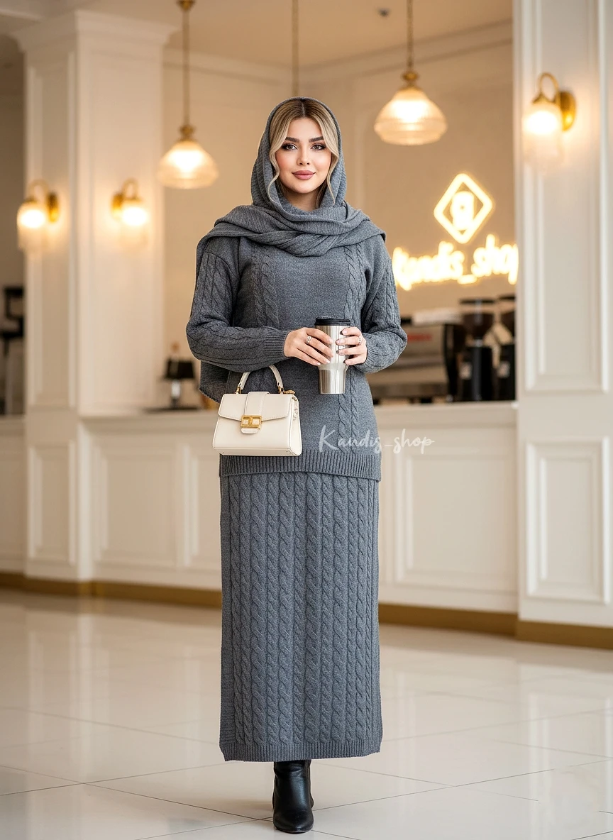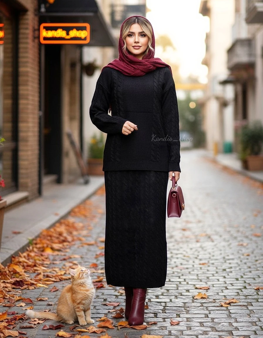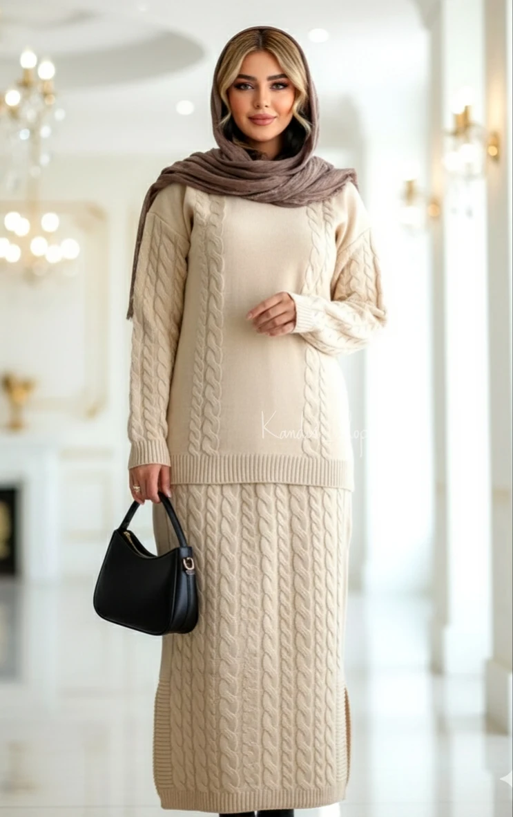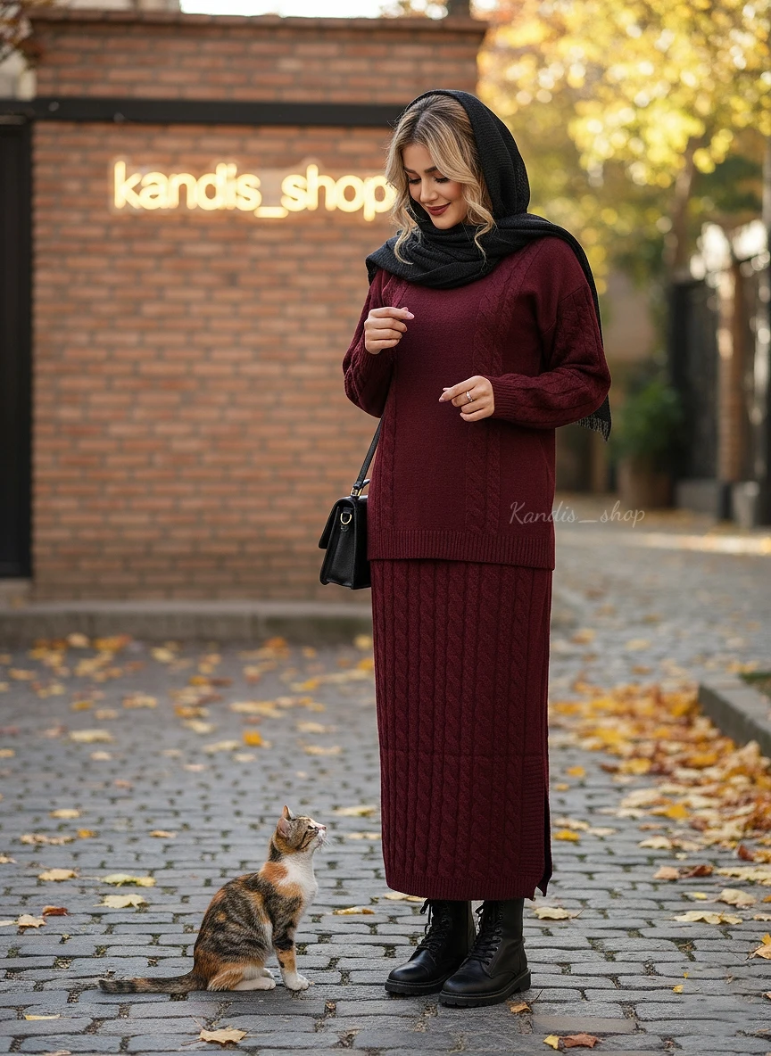 🍂 ست بلوز و دامن بافت پاییزه مدل روشنا🍂 ترکیب