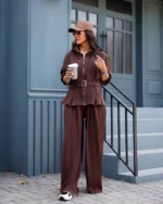 ست بامبر جکت و شلوار بسیار شیک و با کیفیت مناسب تا سایز 46 در چند رنگ زیبا برای خانم های شیک پوش