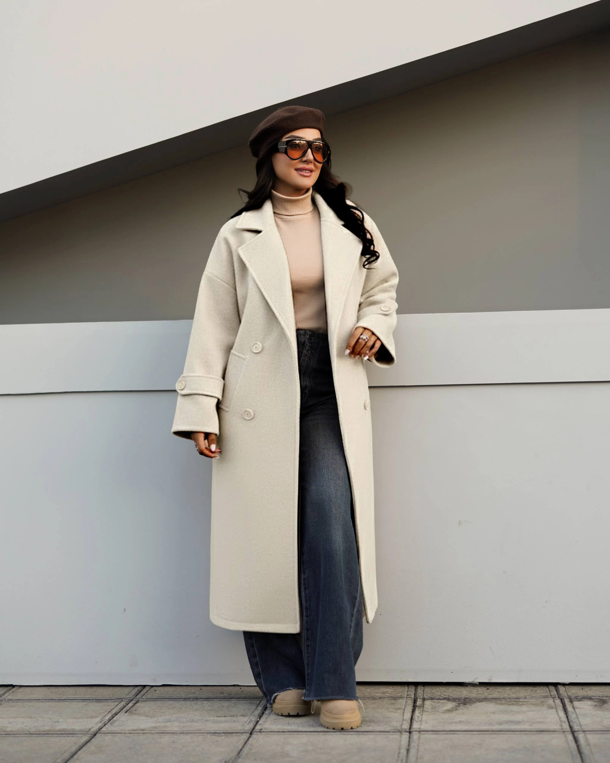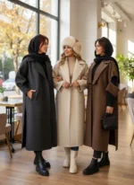 پالتوی بلند اور بسیار شیک و با کیفیت مناسب تا سایز 48در چند رنگ زیبا برای خانم های شیک پوش