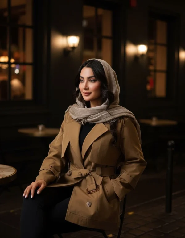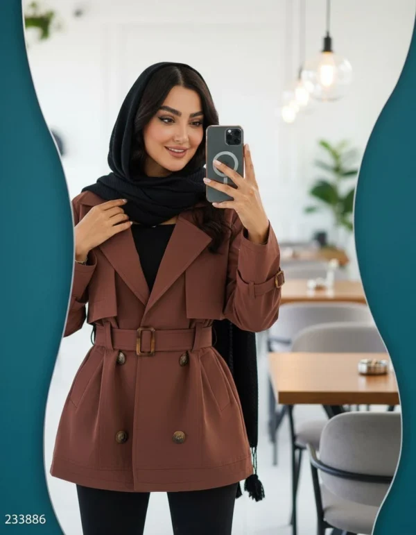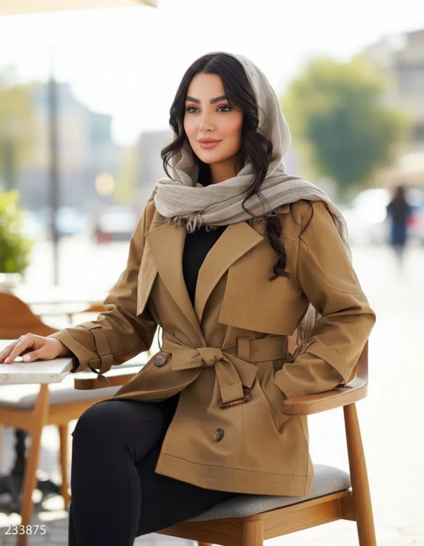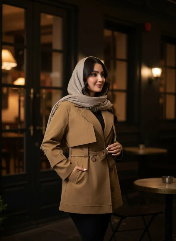 مانتوی بارانی بسیار شیک و با کیفیت مناسب تا سایز 46 در چند رنگ زیبا برای خانم های شیک پوش