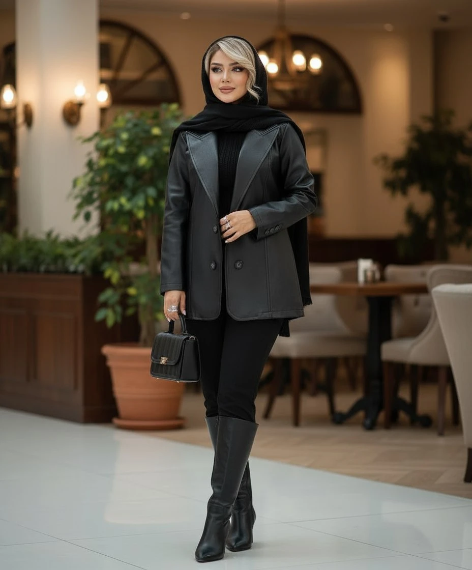 مانتوی چرم بسیار شیک و با کیفیت مناسب تا سایز 42 در چند رنگ زیبا برای خانم های شیک پوش