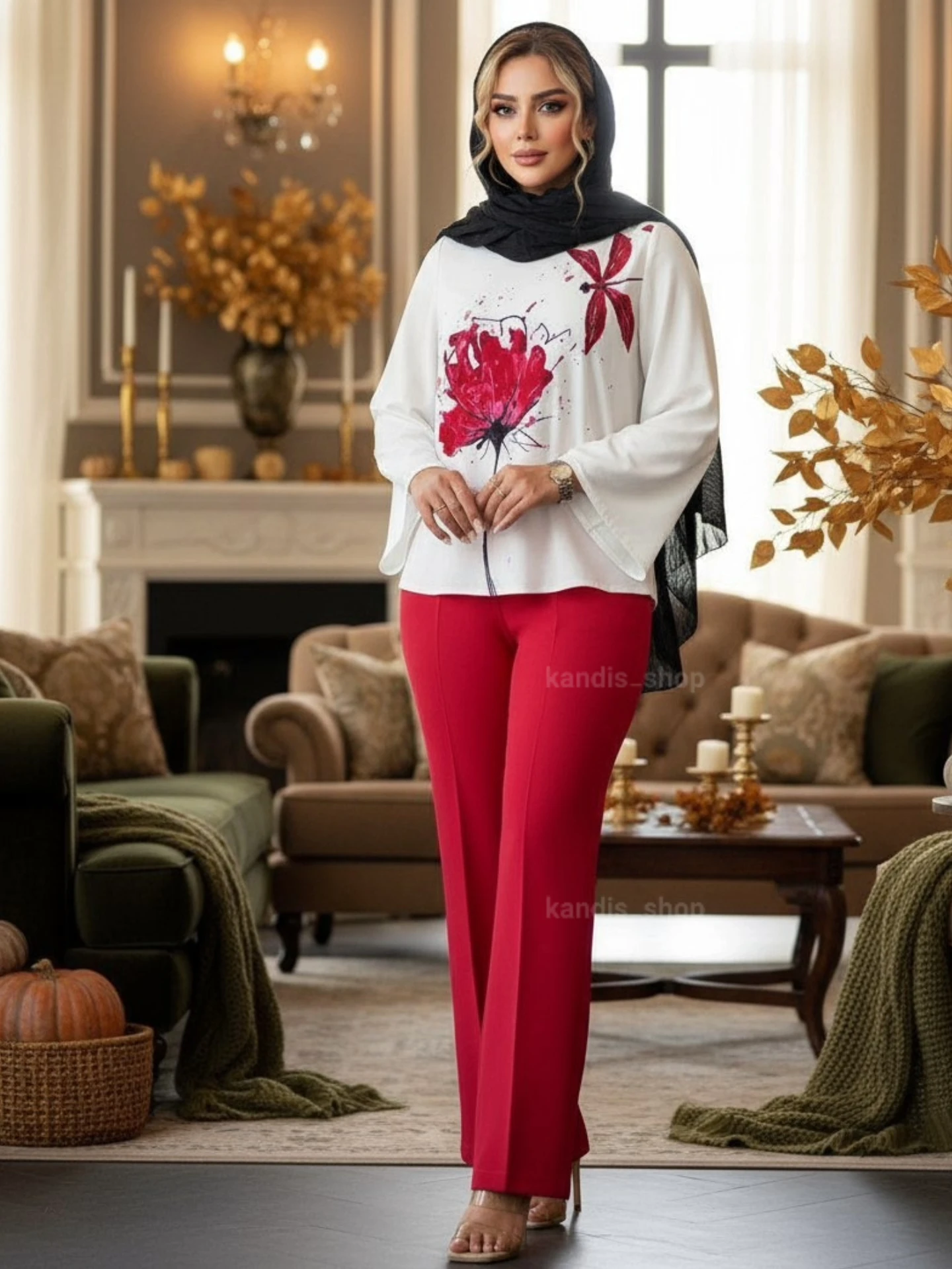 📏 قد  شوميز  ۶۶ قد استین ۵۵ قد شلوار  ۱۰۵