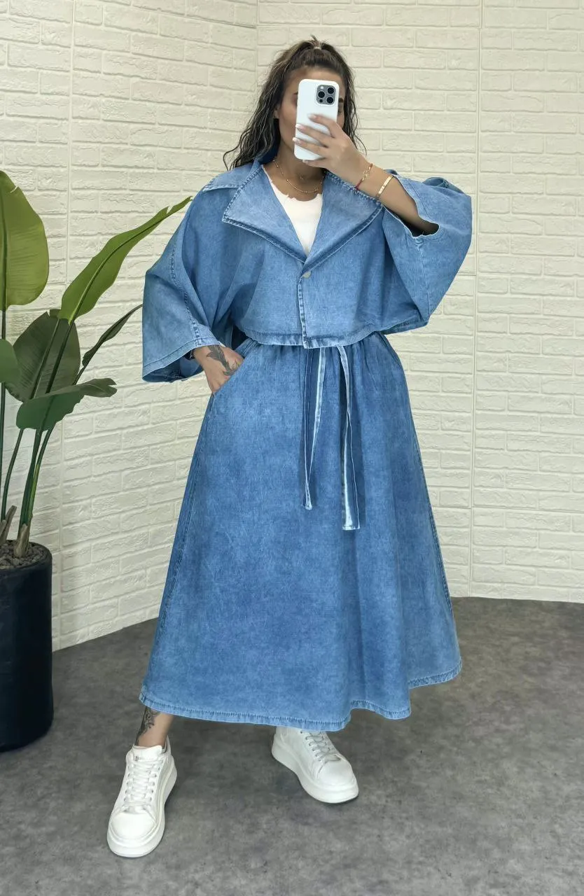 کت و دامن جین بسیار شیک و با کیفیت و با قیمت عالی مناسب تا سایز48 برای شیک پوشان در چندرنگ زیبا