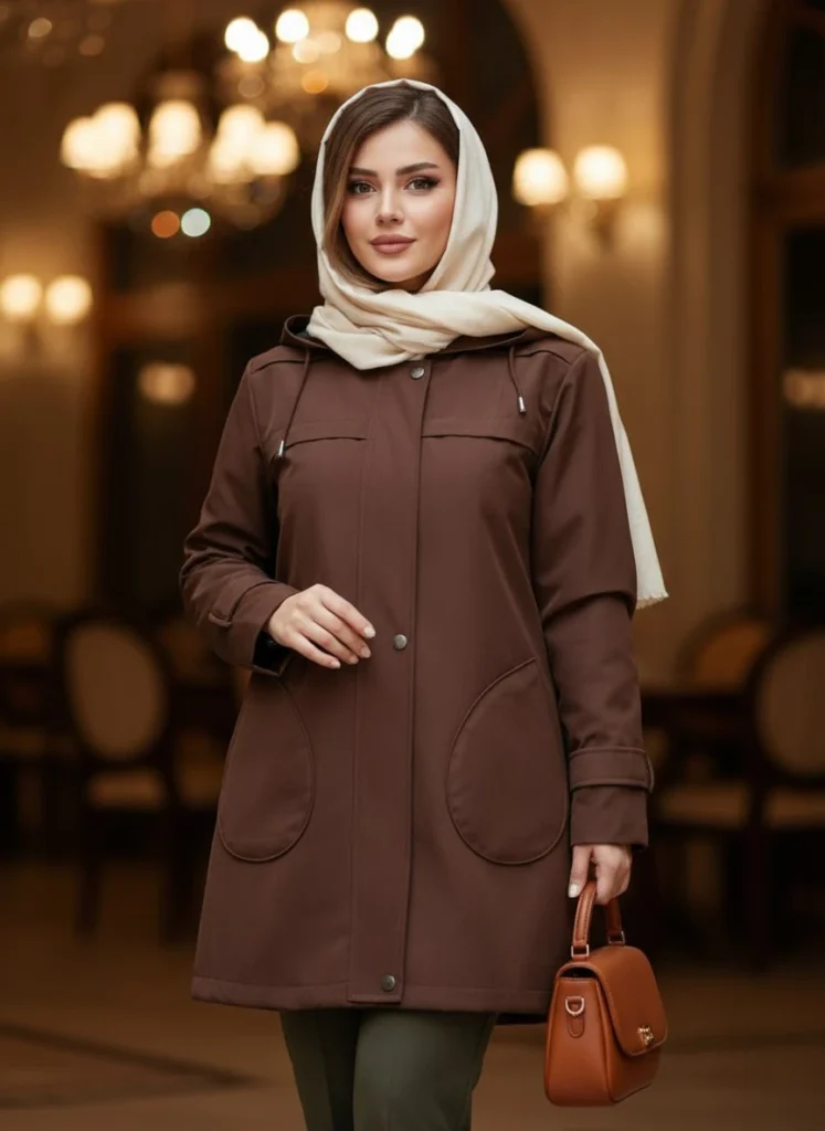 مانتوی بارانی بسیار شیک و با کیفیت و با قیمت عالی مناسب تا سایز 46 در چند رنگ زیبا برای شیک پوشان