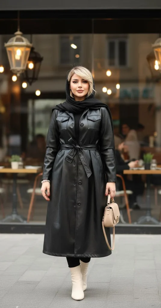 پالتوی چرم بسیار شیک و با کیفیت مناسب تا سایز 50 در چند رنگ زیبا برای خانم های شیک پوش