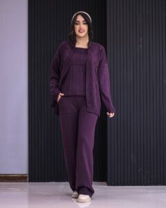 ست سهتیکه بافت جکت شلوار و تاپ مدل صنم