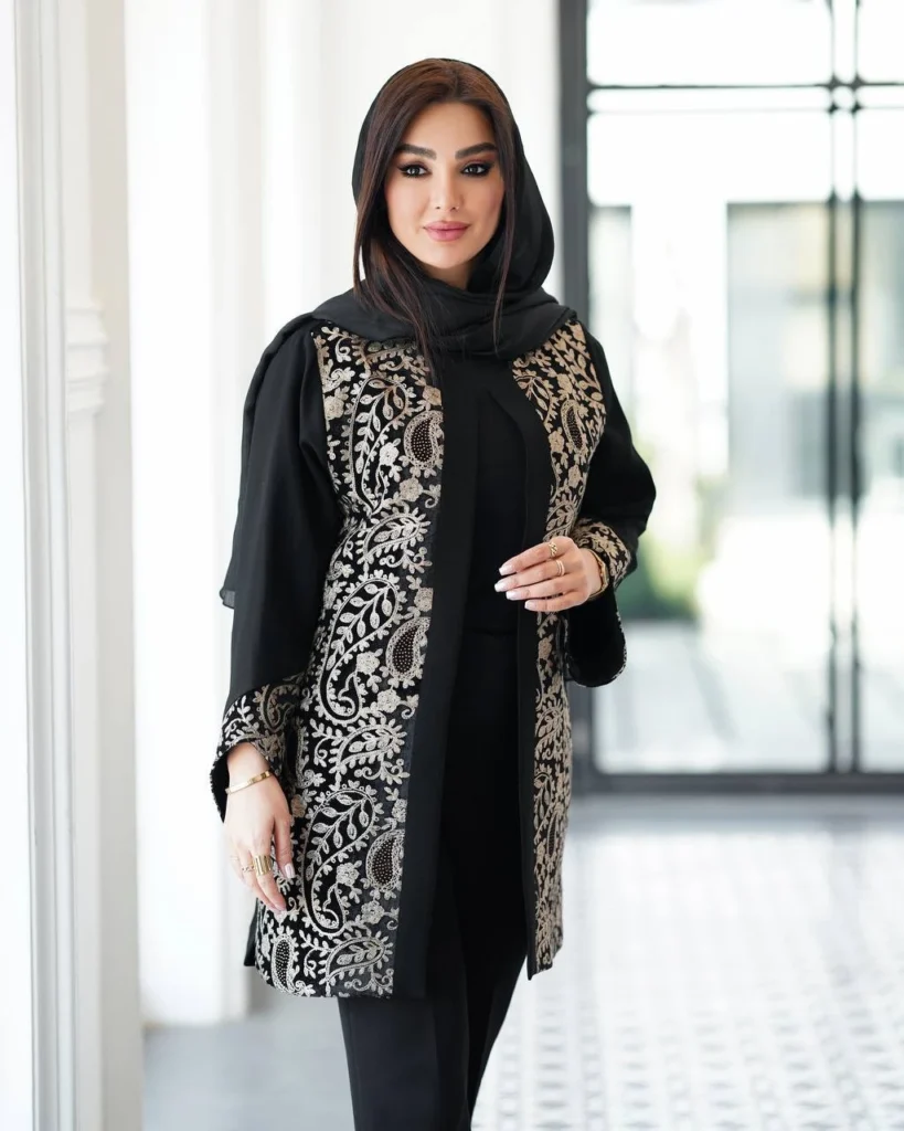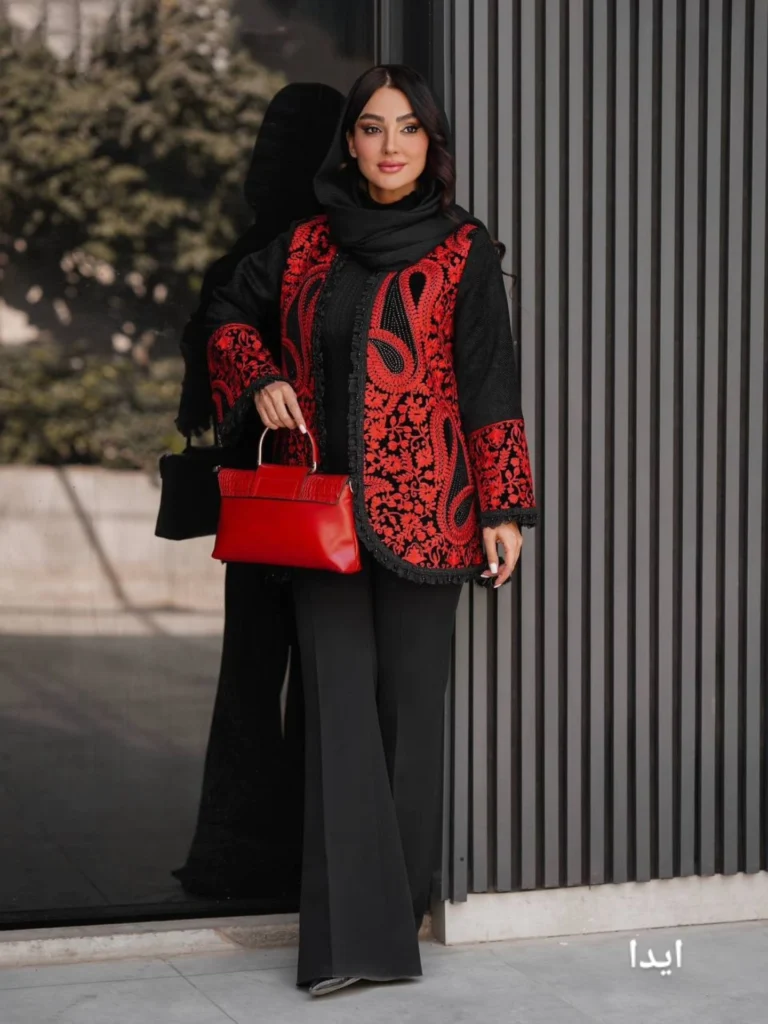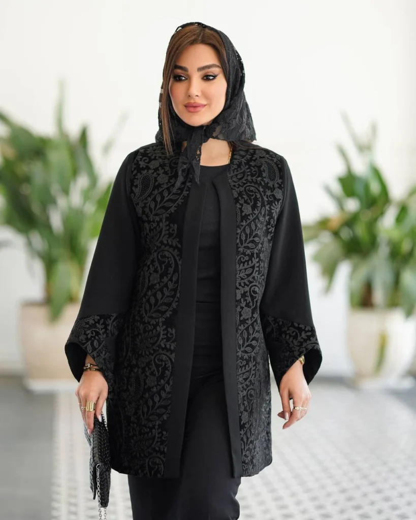 مانتوی کتی مجلسی بسیار شیک و با کیفیت مناسب تا سایز 48 در دو رنگ زیبا برای خانم های شیک پوش