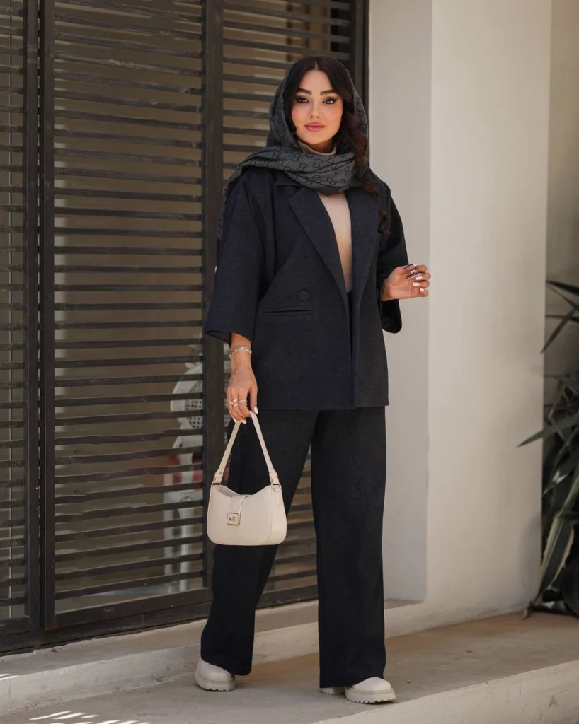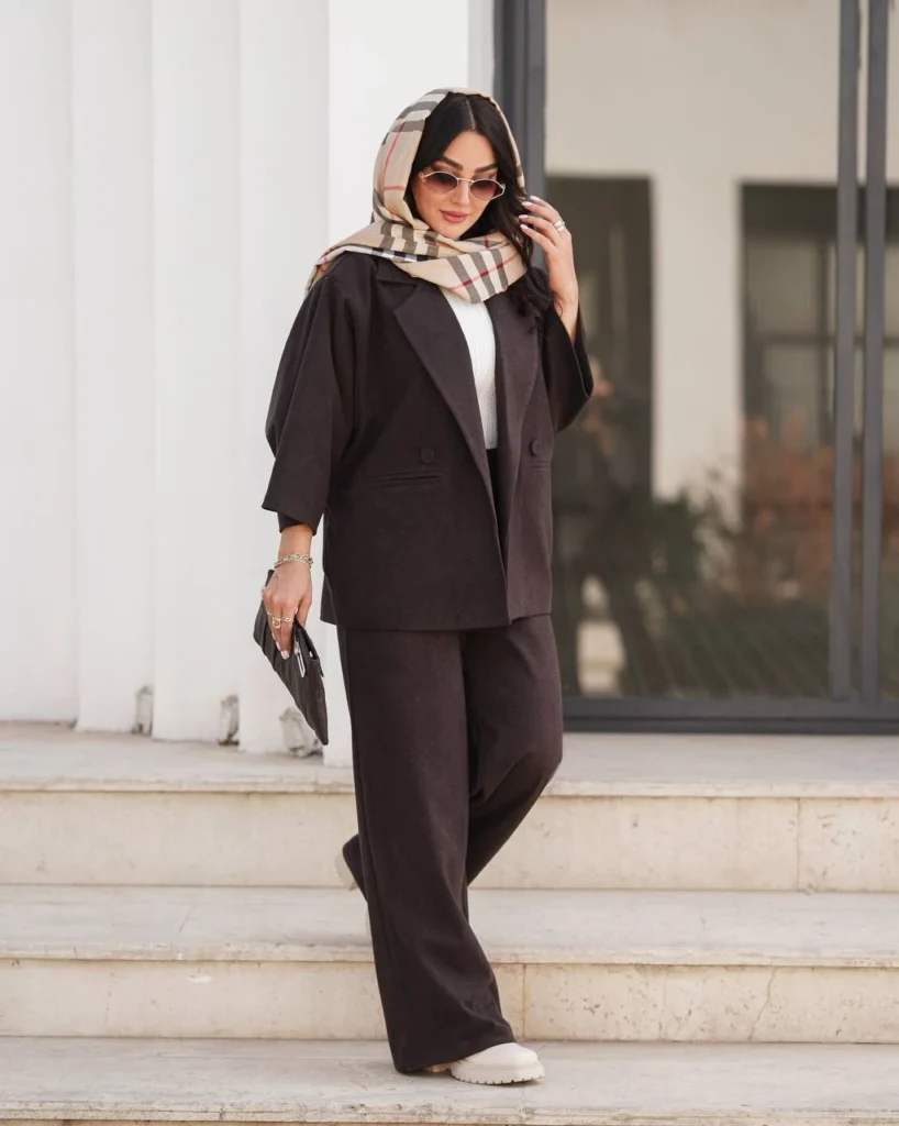 کت شلوار شقایق یقه انگلیسی با شلوار فول بگ