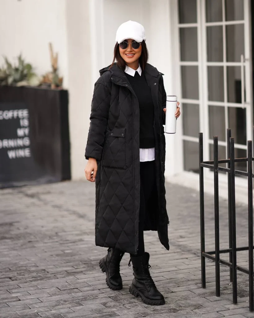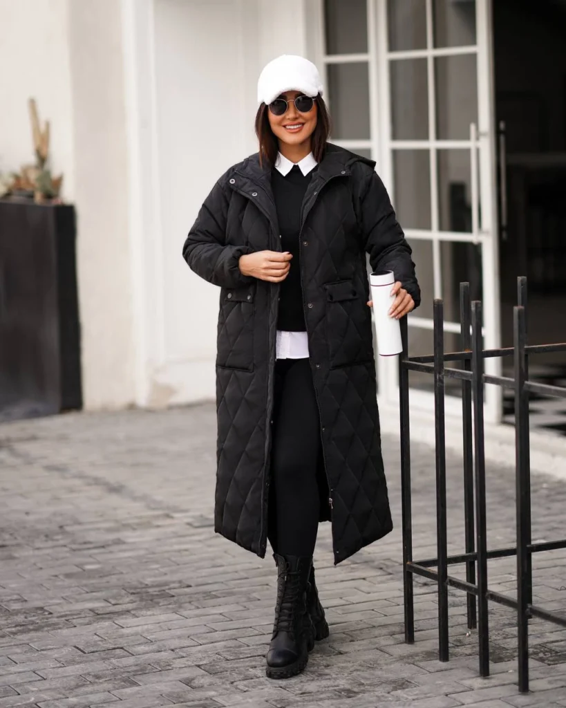 کاپشن کلاهدار بلند امبوردی مدل لیوزا (Livza) کد ۱۶۳